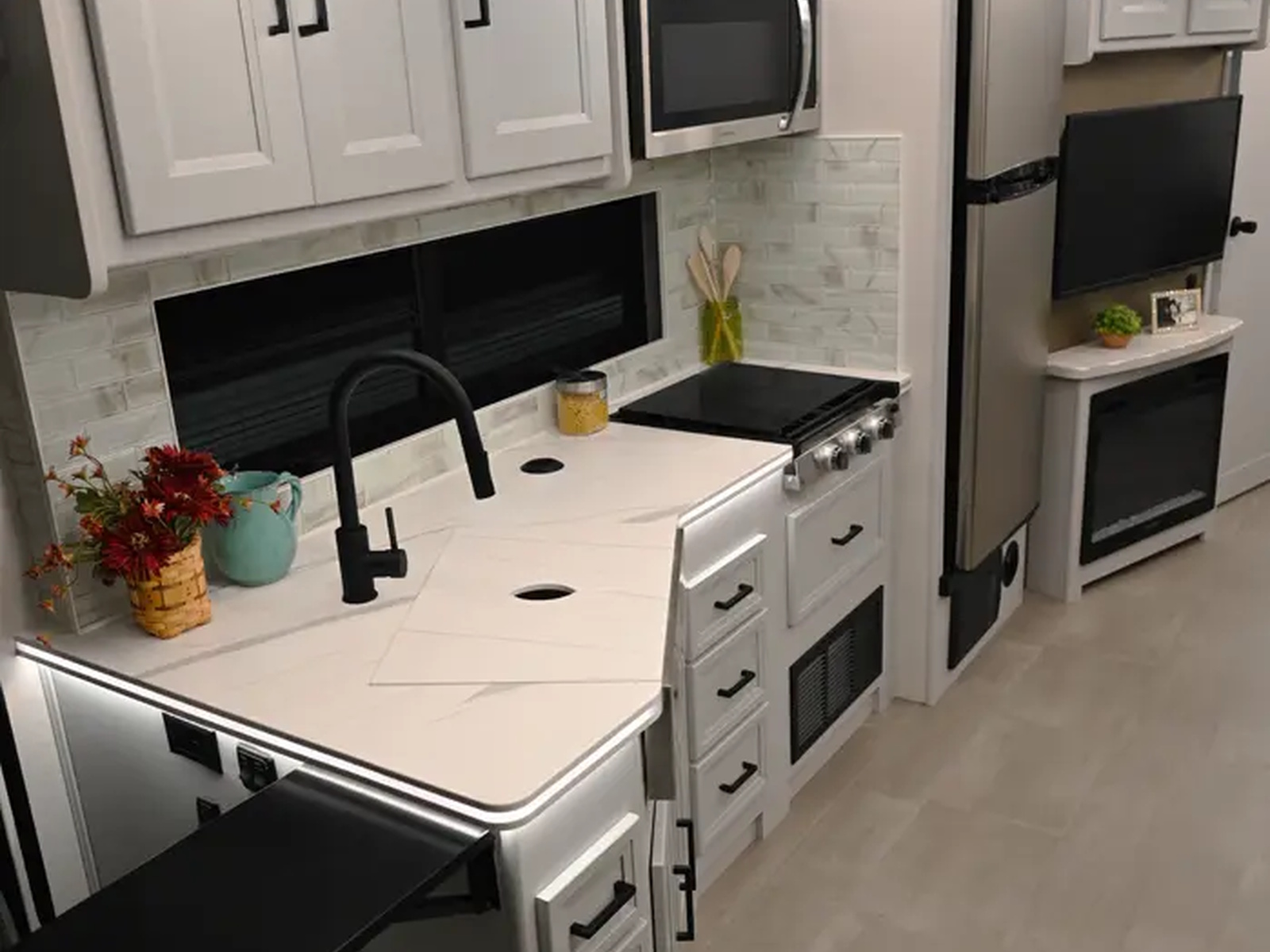 The Encore offers the look, feel and drivability of a premium diesel machine—all without the diesel price tag. What's more, the gas-powered Encore is built for the long haul. Constructed with a fiberglass roof, 22.5" wheels, aluminum rims, and stackable washer/dryer prep, it's an unbeatable combination of power, luxury, and livability.