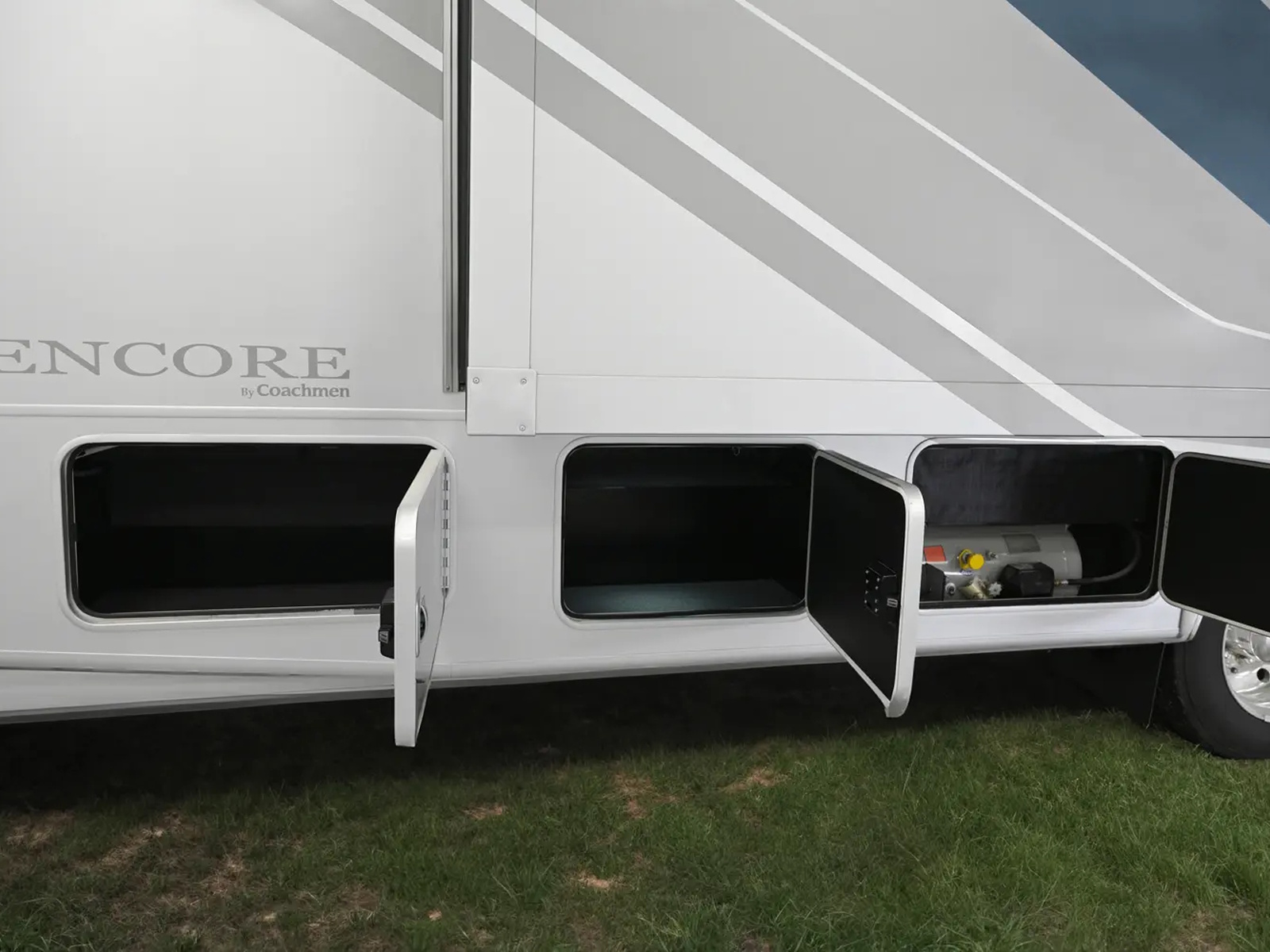 The Encore offers the look, feel and drivability of a premium diesel machine—all without the diesel price tag. What's more, the gas-powered Encore is built for the long haul. Constructed with a fiberglass roof, 22.5" wheels, aluminum rims, and stackable washer/dryer prep, it's an unbeatable combination of power, luxury, and livability.