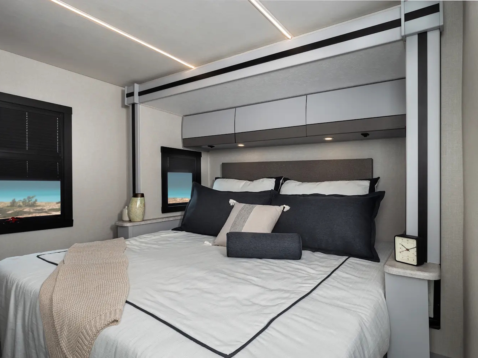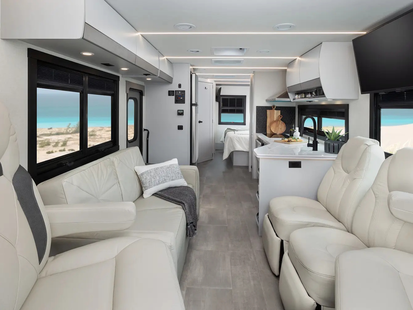 The Euro 25EU delivers a compact, European-inspired drive in a stylish 28-foot motorcoach. With a narrow 99" body and Ford F-53 chassis, it’s effortless to navigate winding forest roads, coastal highways, or tight campsites. Modern square windows bring the outdoors in, while efficient systems like on-demand water heating and a 1,200W inverter let you stay off-grid longer and travel lighter.