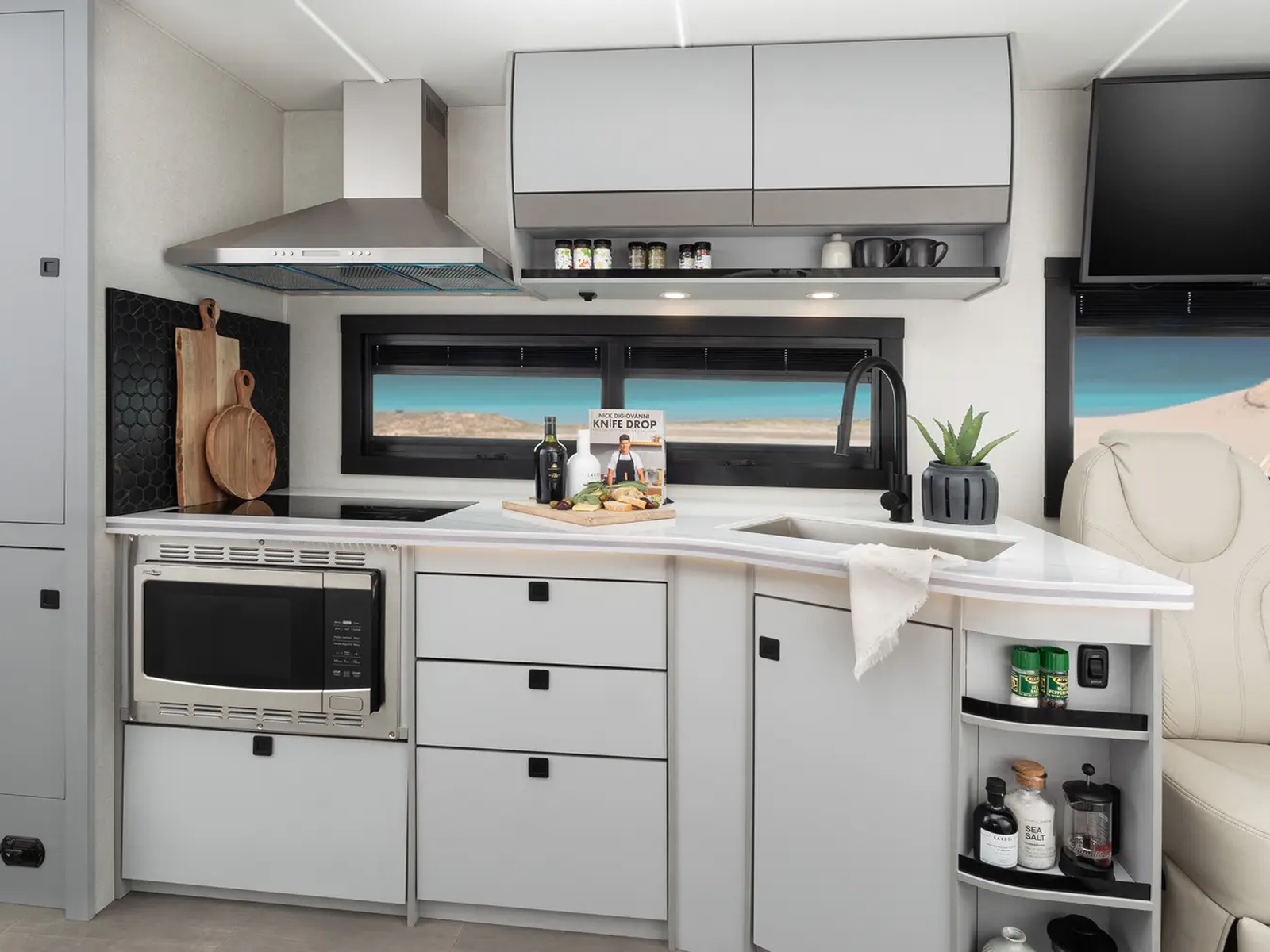 The Euro 25TB offers flexible sleeping and lounging in a compact Class A package. Built on a Ford F-53 chassis, its gas-powered engine combines fuel economy with reliable touring power. With integrated shading on large square windows, premium insulation, and on-demand hot water, it supports spontaneous weekend getaways and longer outdoor journeys alike.