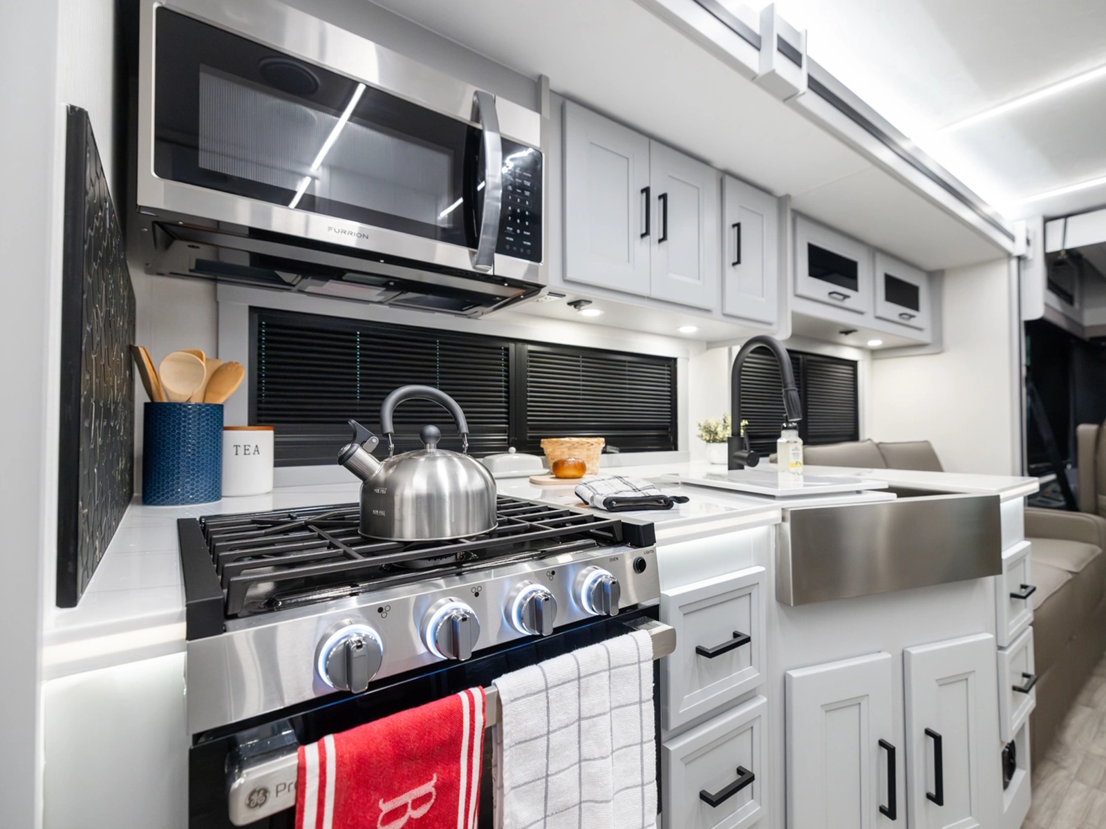 The Mirada Class A Motorhome delivers unmatched comfort, style, and elegance for travelers who want a refined road experience. Its spacious and thoughtfully designed interior provides a luxurious retreat after a day exploring scenic highways, national parks, or coastal routes. Standard features and high-end finishes create an atmosphere of relaxation and sophistication, letting every journey feel effortless. The Mirada combines smooth drivability with upscale amenities, offering a sanctuary on wheels for outdoor enthusiasts who refuse to compromise on comfort or style.