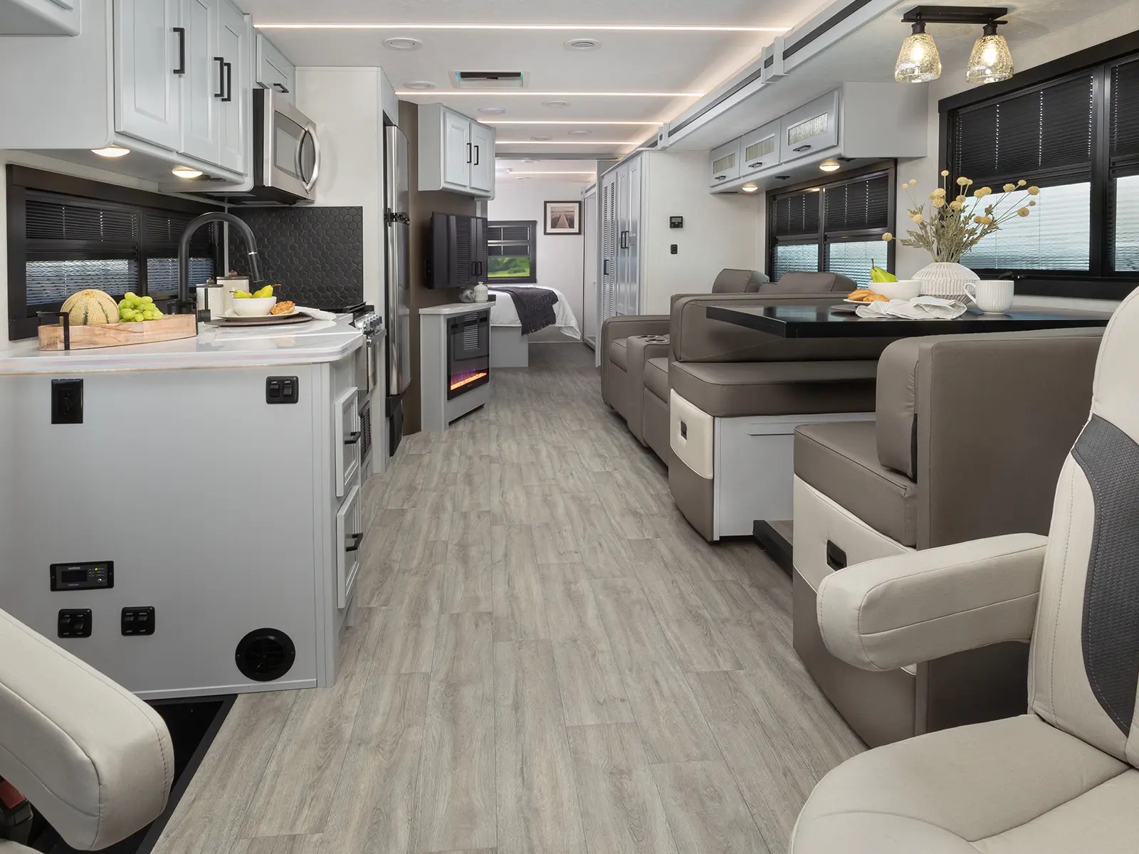 The Mirada Class A Motorhome delivers unmatched comfort, style, and elegance for travelers who want a refined road experience. Its spacious and thoughtfully designed interior provides a luxurious retreat after a day exploring scenic highways, national parks, or coastal routes. Standard features and high-end finishes create an atmosphere of relaxation and sophistication, letting every journey feel effortless. The Mirada combines smooth drivability with upscale amenities, offering a sanctuary on wheels for outdoor enthusiasts who refuse to compromise on comfort or style.