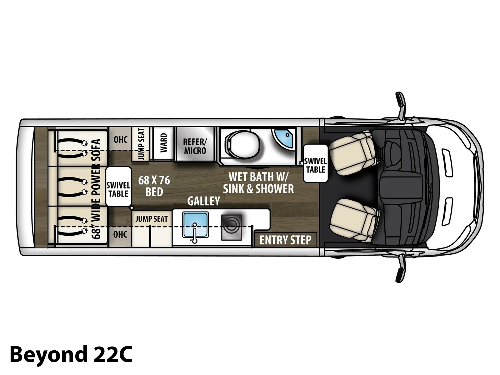This versatile Class B Motorhome is designed for today's active lifestyles. Experience unrivaled fuel economy combined with legendary Ford® styling and reliability. Relax in luxurious captains seats while enjoying the view through large frameless windows. The interior ergonomics ensure you are as comfortable on the road as you are at home. Beyond gets you where the action is, in style!