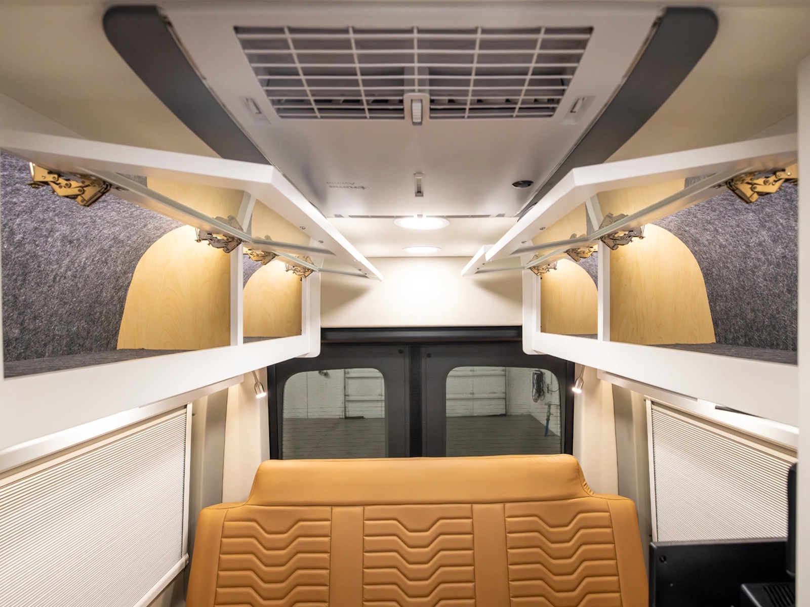 - Rear pull-down screen & rear window covers