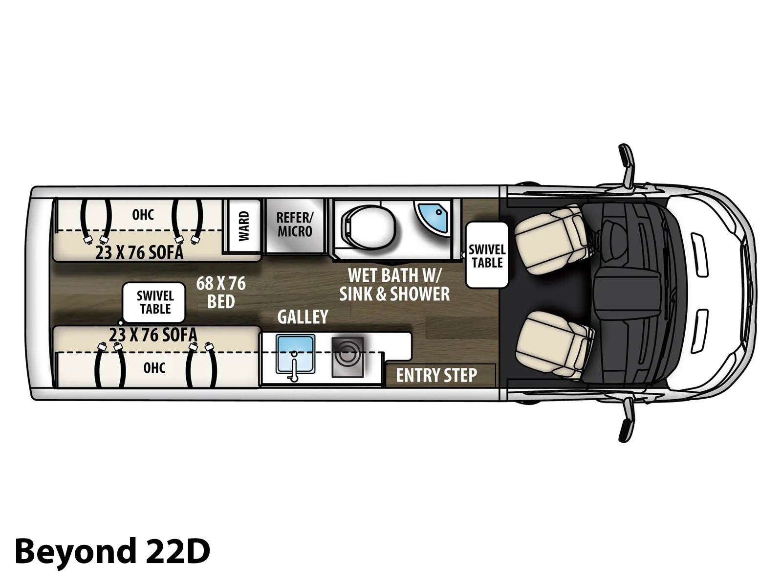 This versatile Class B Motorhome is designed for today's active lifestyles. Experience unrivaled fuel economy combined with legendary Ford® styling and reliability. Relax in luxurious captains seats while enjoying the view through large frameless windows. The interior ergonomics ensure you are as comfortable on the road as you are at home. Beyond gets you where the action is, in style!