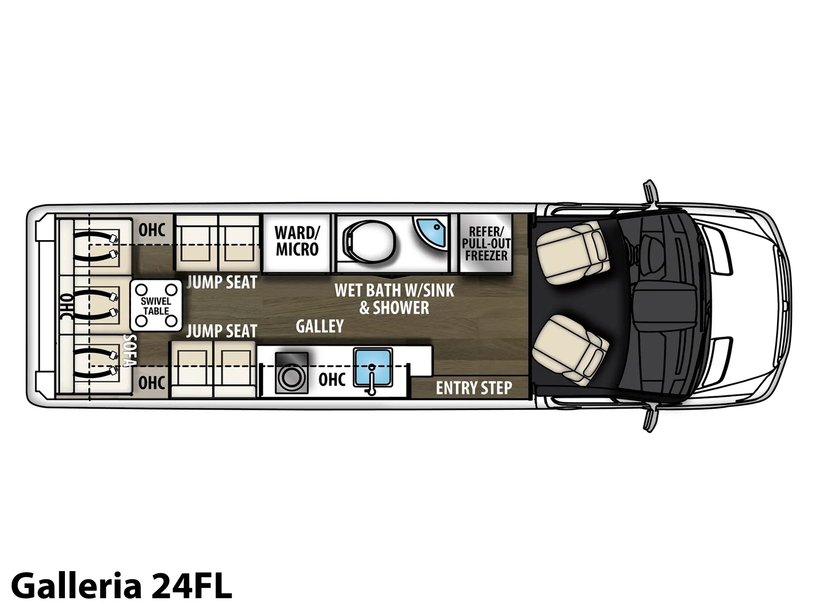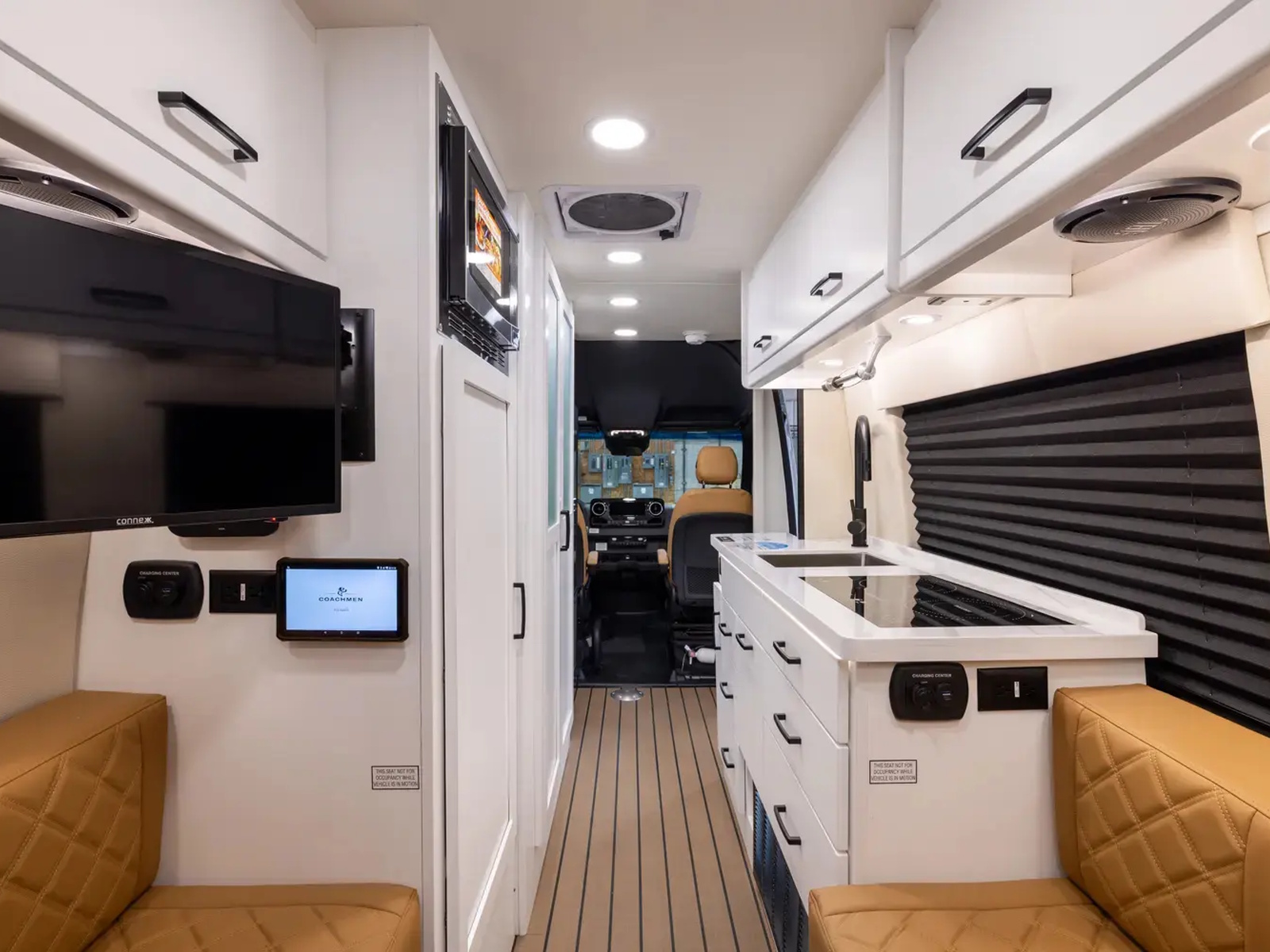 Coachmen RV and Mercedes have combined their decades worth of experience to introduce Galleria, a Class B Motorhome that offers the utmost in quality, luxury and value. Built on the award winning 3500 Mercedes Sprinter extended platform with one of the cleanest running turbo-diesel "Blue TEC" engines on the market which delivers an impressive 325 ft lb of torque while still providing excellent fuel economy. Galleria uses high end components like the Truma Combi furnace/water heater system, Onan generator and maple cabinetry that is handcrafted by a local Amish cabinet maker with cabinet doors, soft close doors/drawers and custom trim.