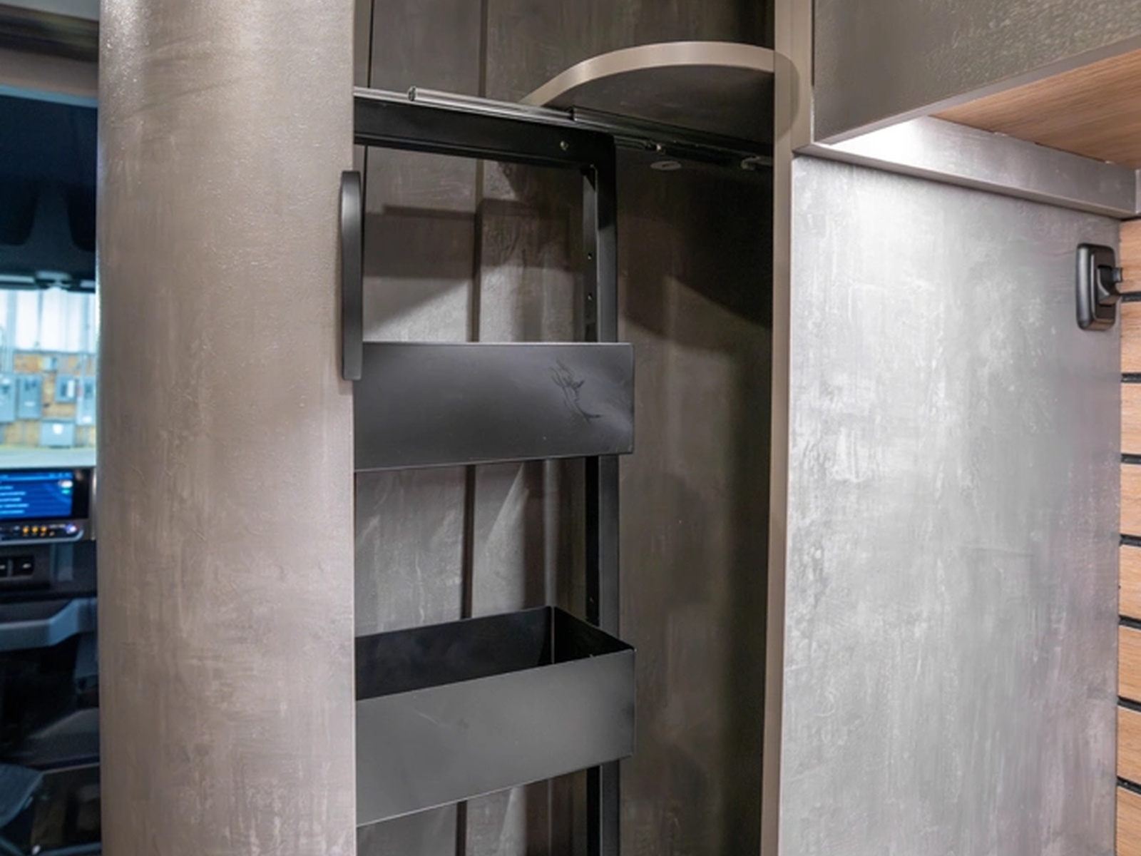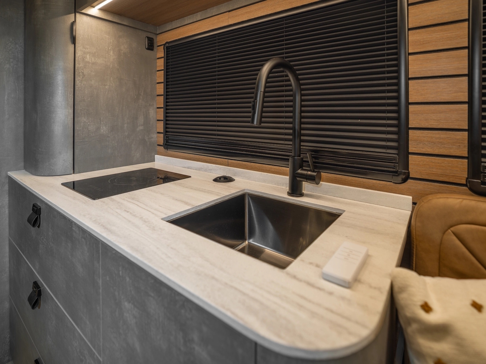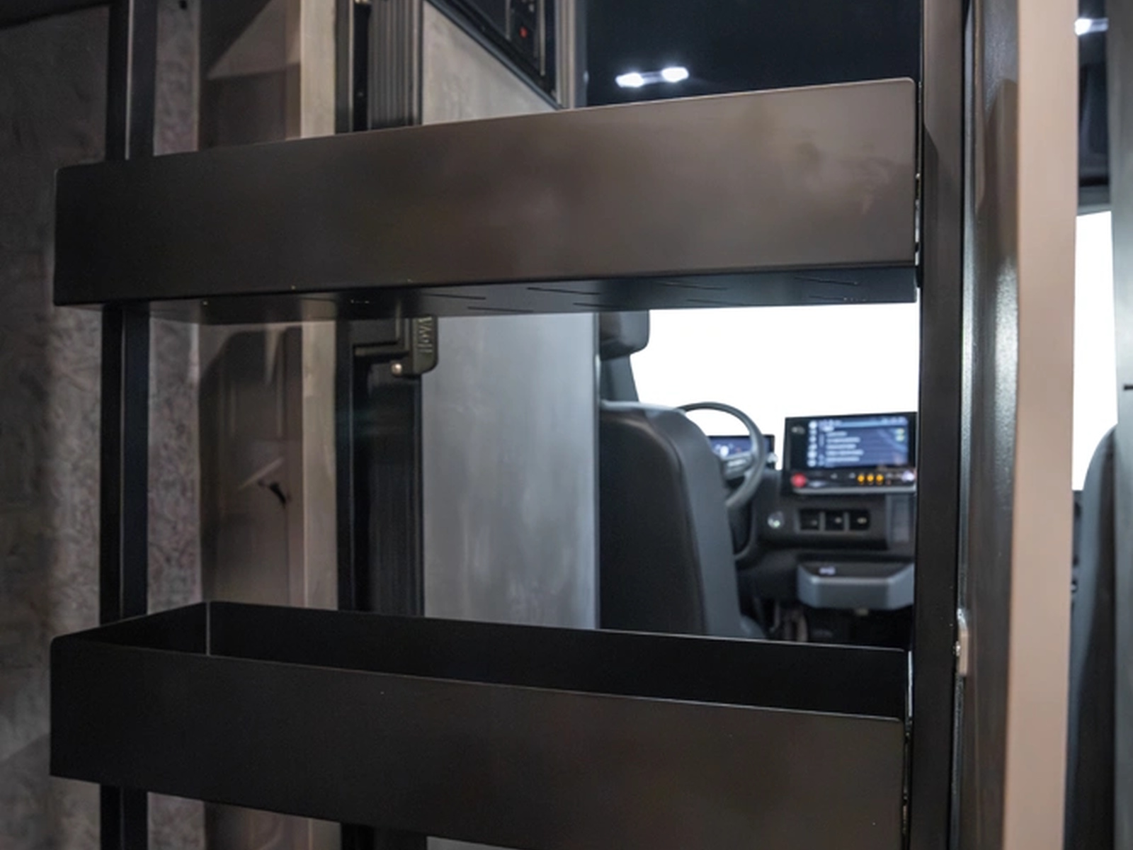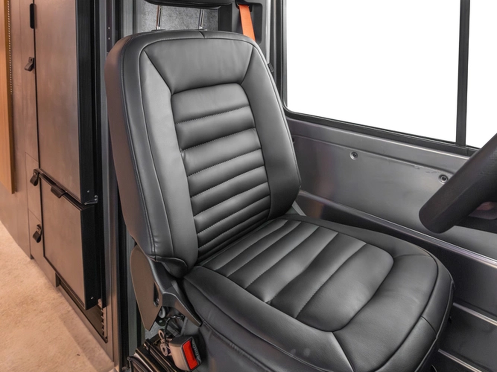 Aerodynamic exterior styling paired with aftermarket rims creates a sleek, aggressive presence on the road. Underneath, advanced construction materials like G-Strong panels and lightweight Lisocore cabinetry reduce weight while increasing durability and thermal performance. Less weight means longer range, greater efficiency, and more freedom to go off-grid with confidence.