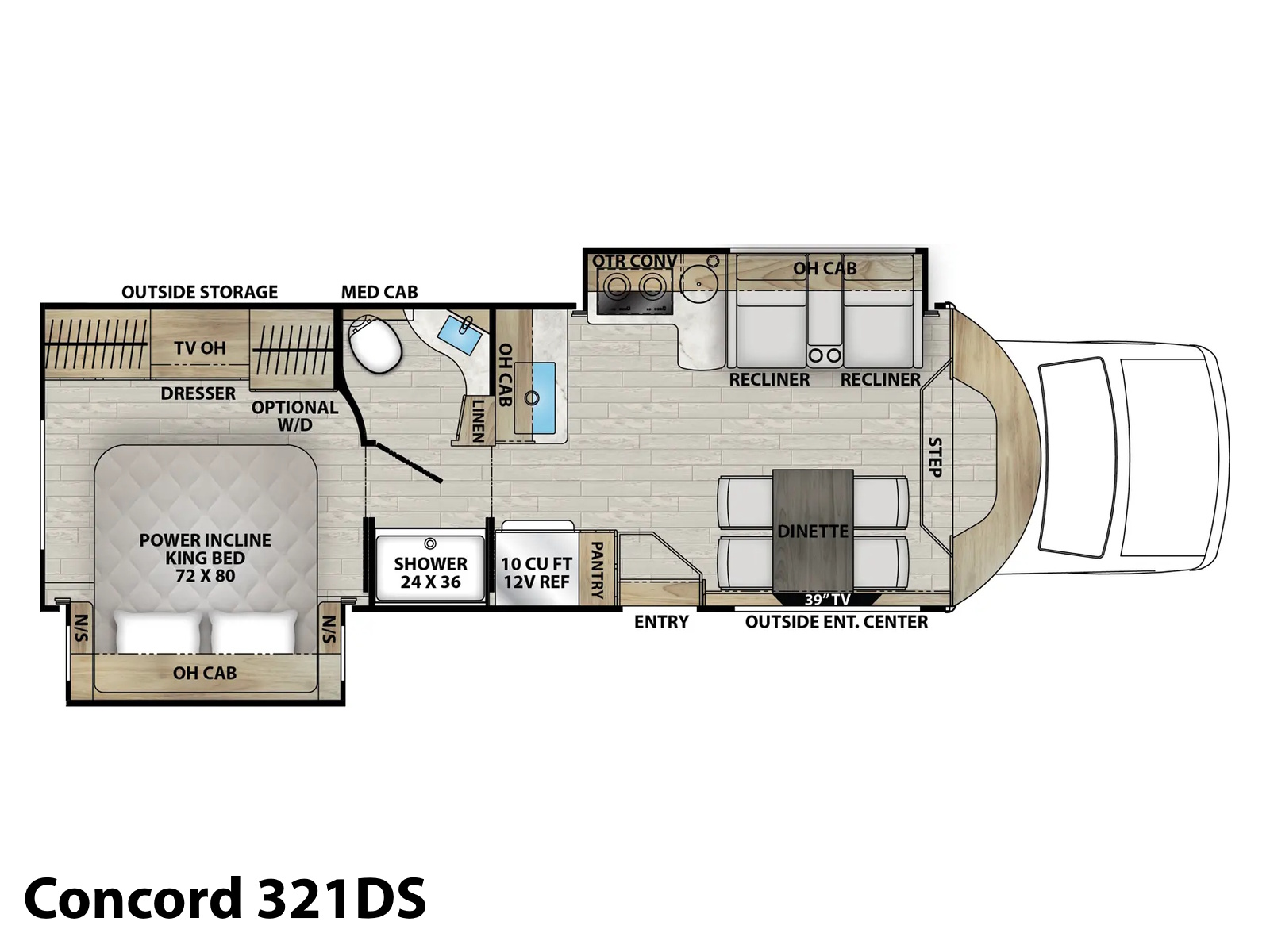 Concord is designed with the experienced RV couple in mind. It is the perfect fit if you are looking for a coach that is smaller than a Class A, but offers more living area than a Class B. Abundantly appointed with luxury features, the Concord is the perfect blend of size, features, and value that reimagines what a Class C motorhome can be!