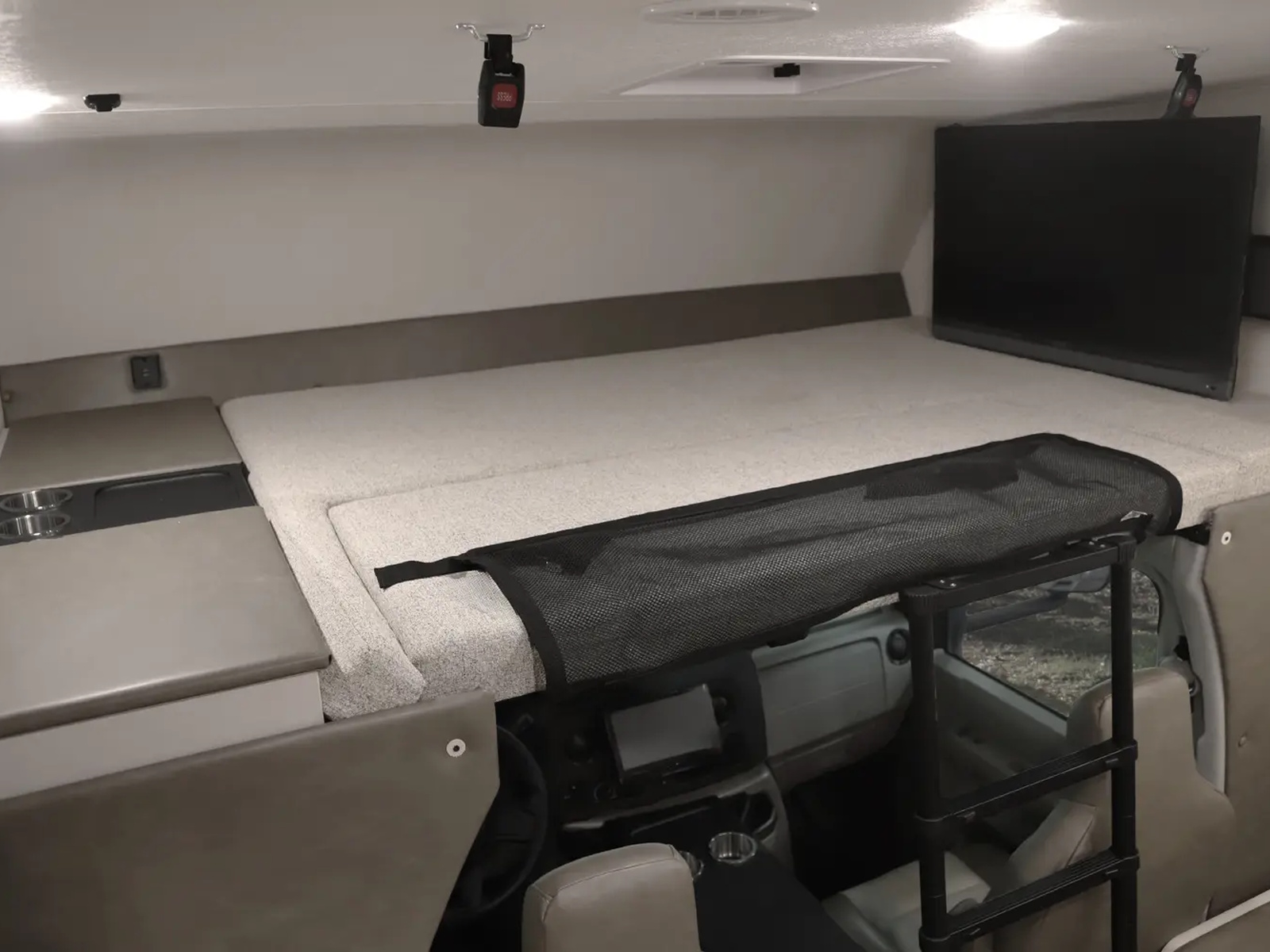 - Large 57 x 80" Cab-Over Sleeping Area with Cup Holders & Storage (800 lb. Capacity)