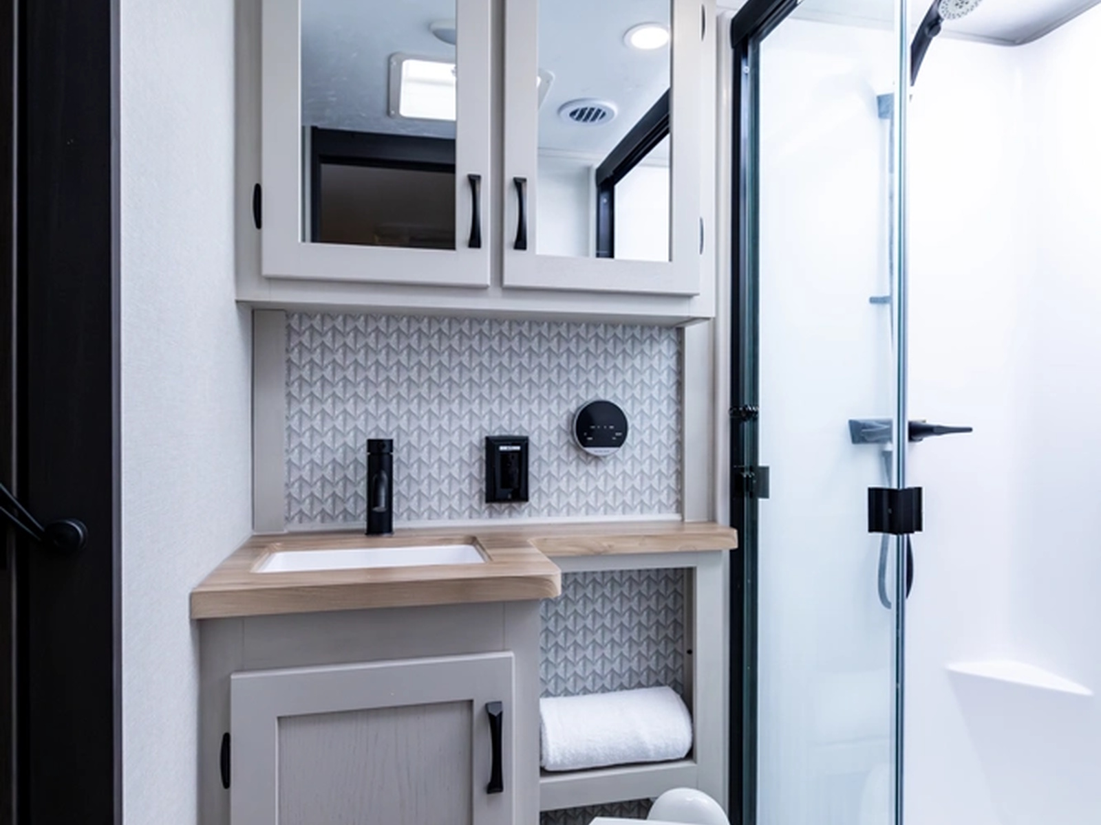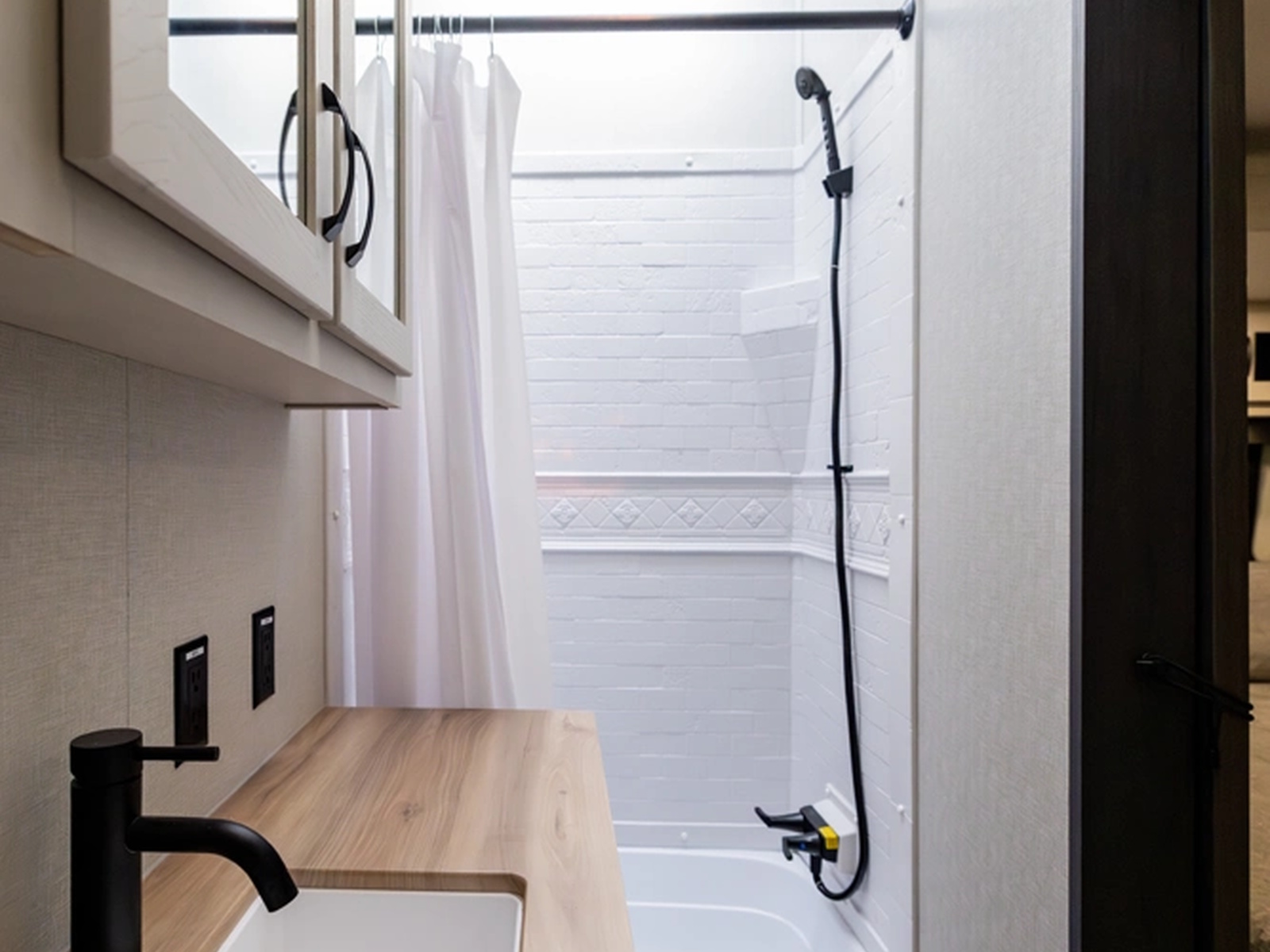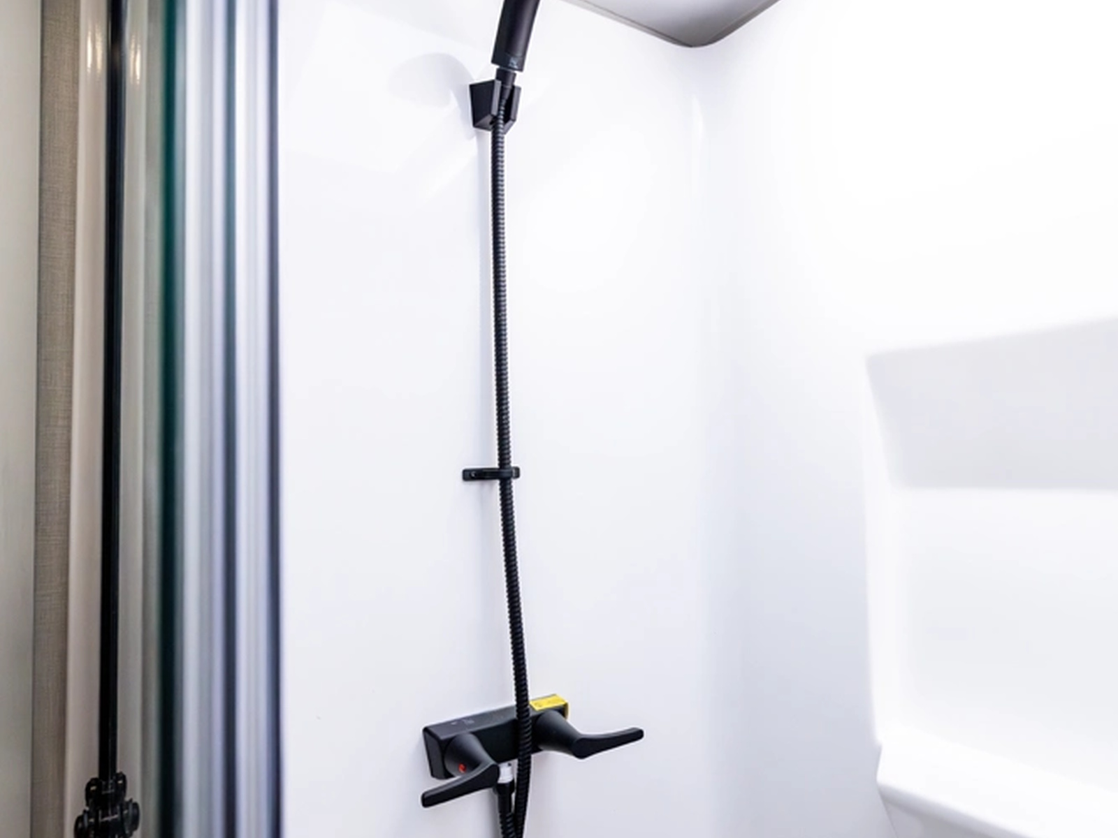 - Upgraded Marine-Style Convenience Center W/ Black Tank Flush, Hot/Cold Shower