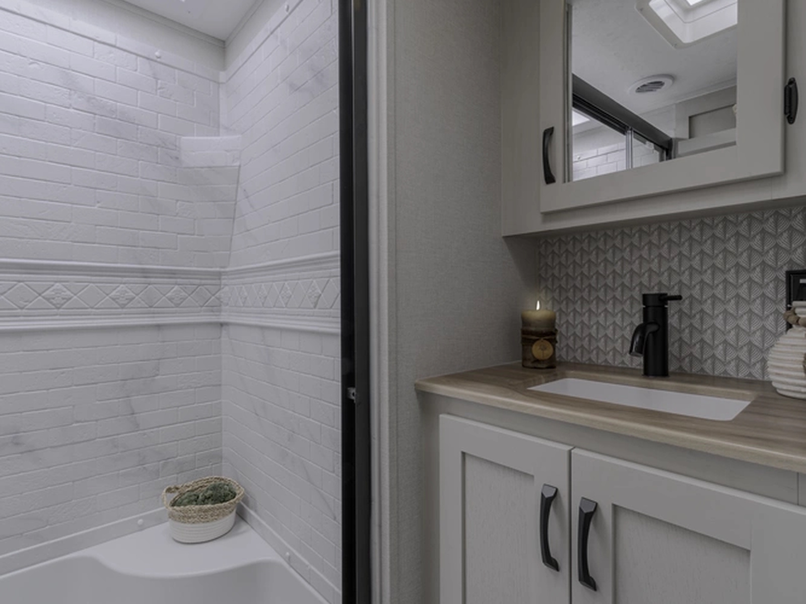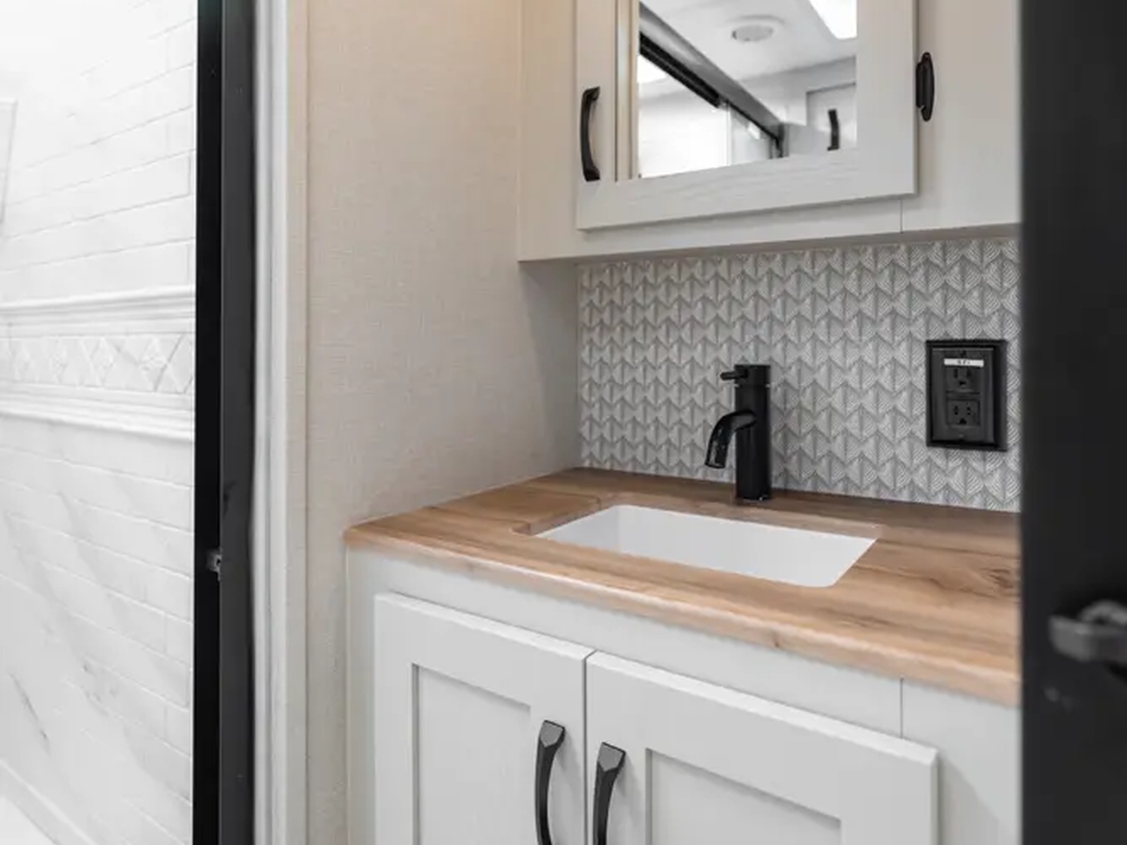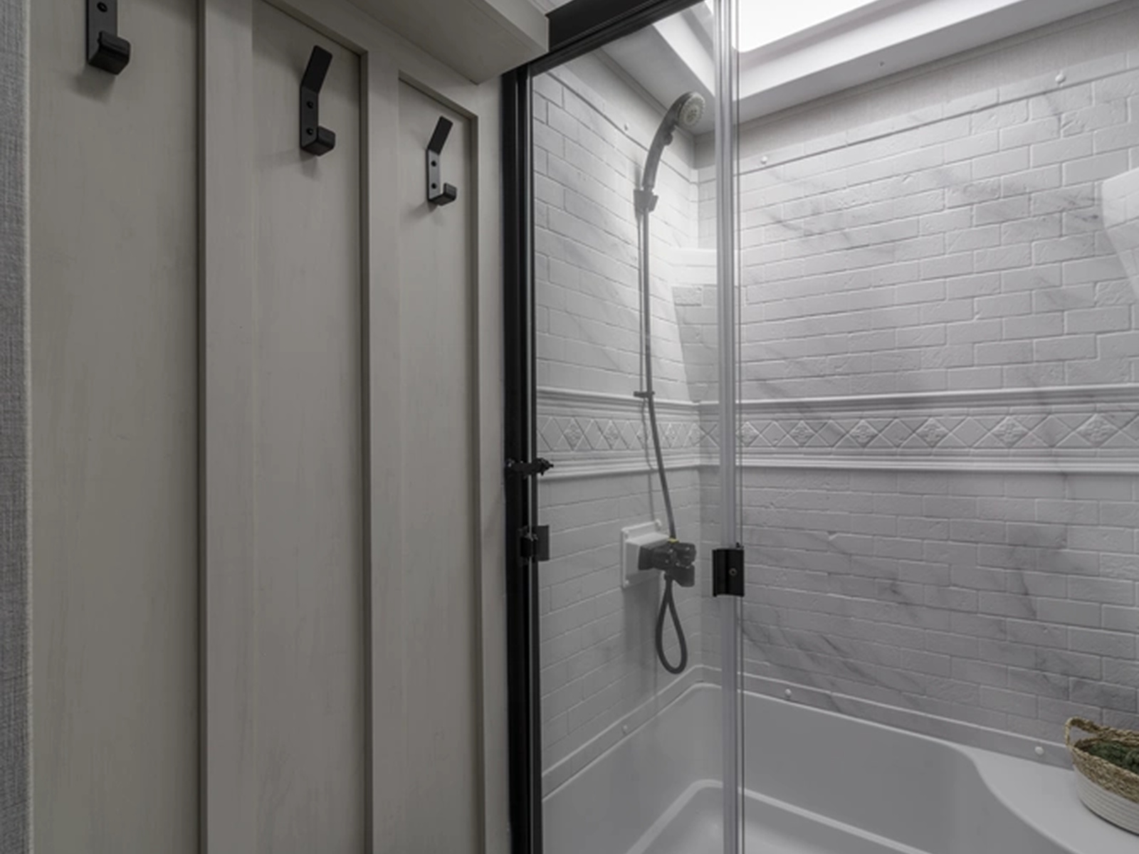 - NEW Upgraded Board & Batten Wall W/ Matte Black Towel Hooks (Select Models)