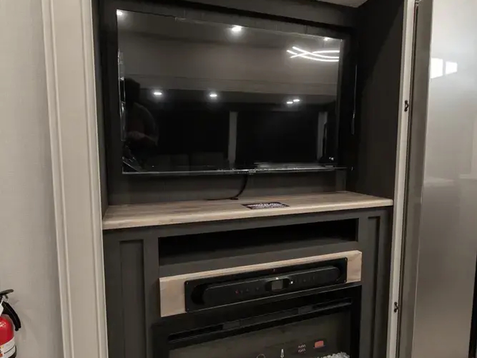 • NEW Upgraded Carbon & Walnut Entertainment Center W/ JBL® Soundbar Including AM/FM & Bluetooth®