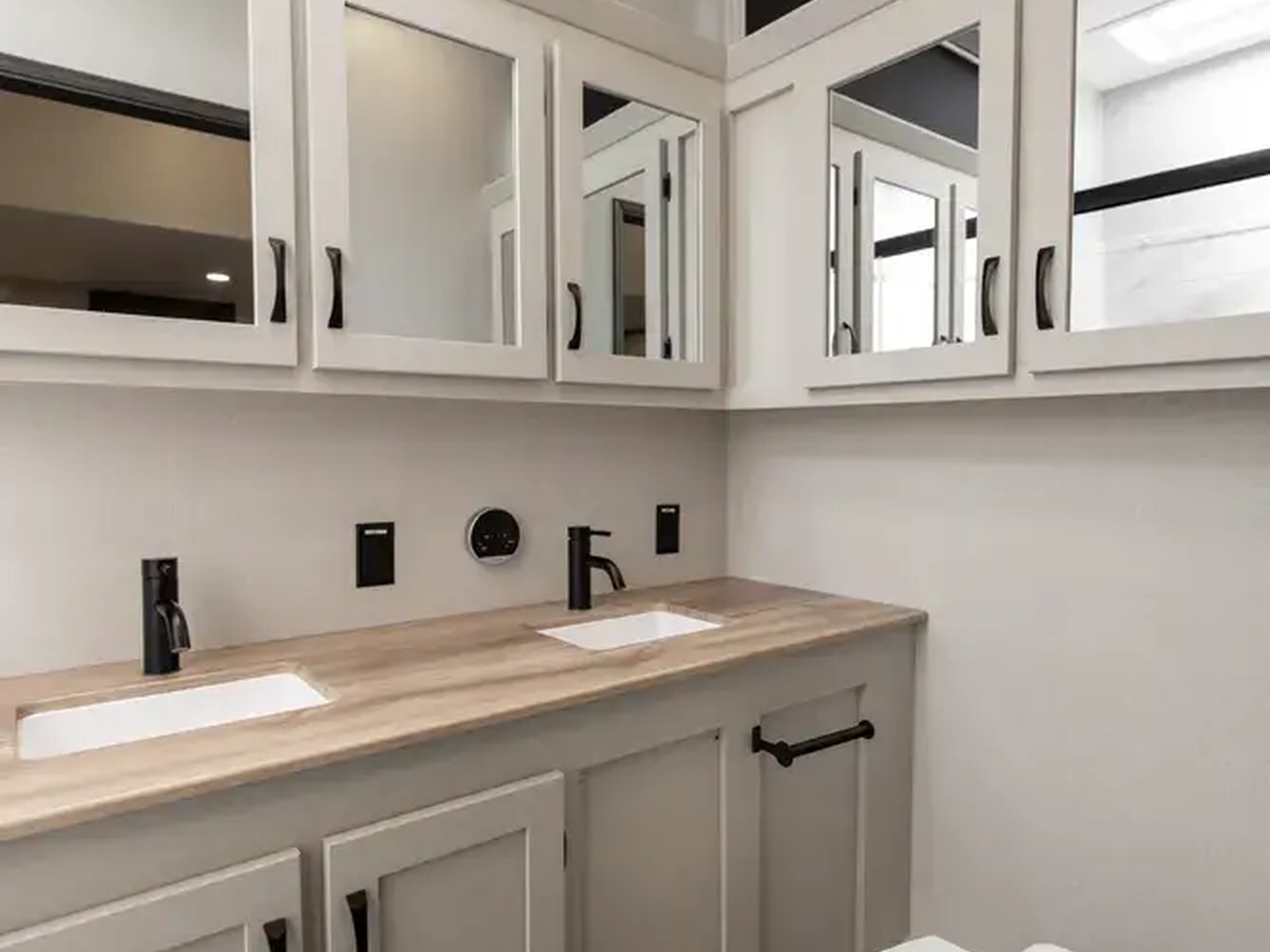 • NEW Upgraded Walnut Countertop W/ Vernon Mist Accent Wall