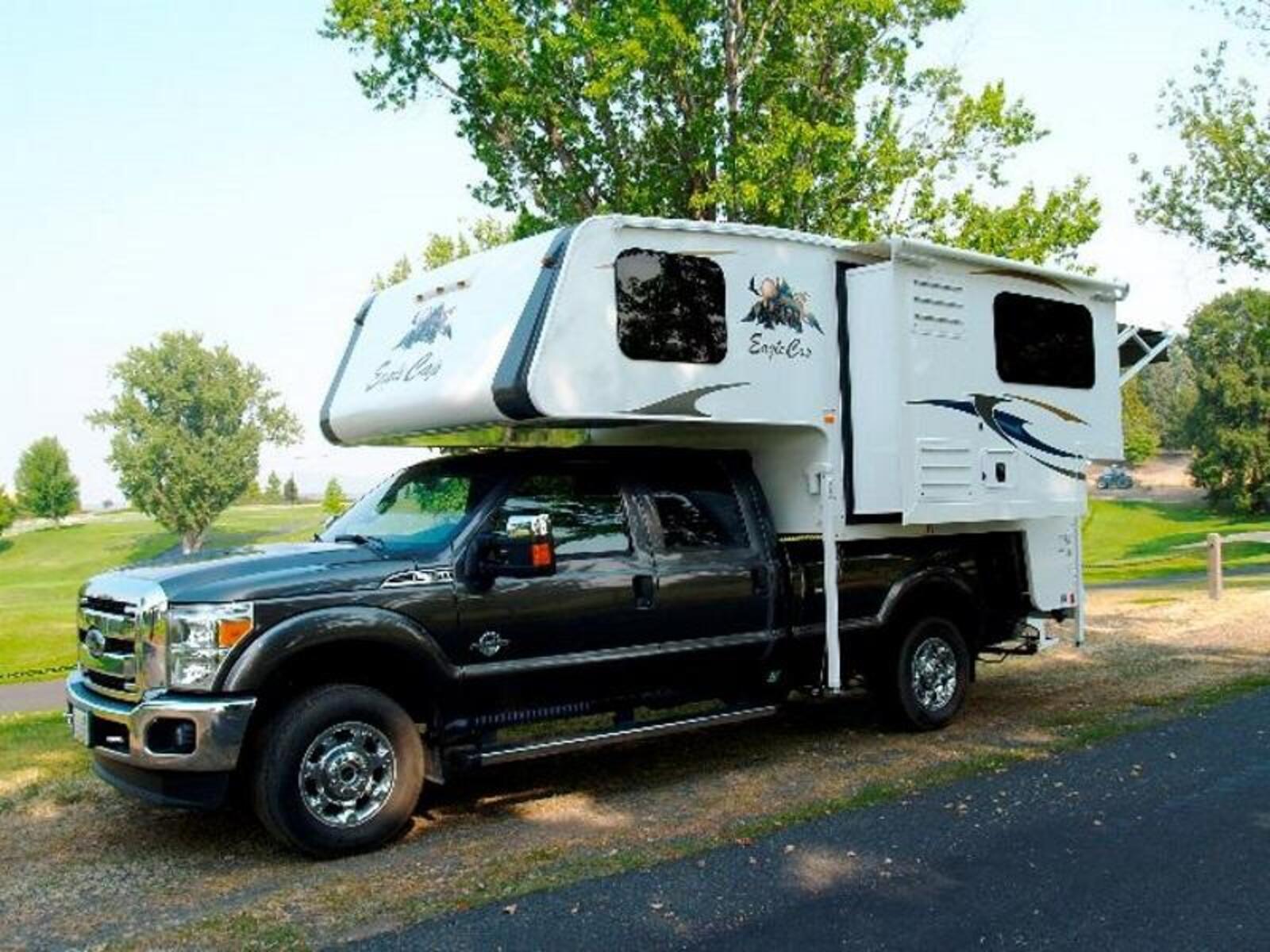 Eagle Cap Triple Slide Camper fits 1-Ton LB dually trucks and larger.