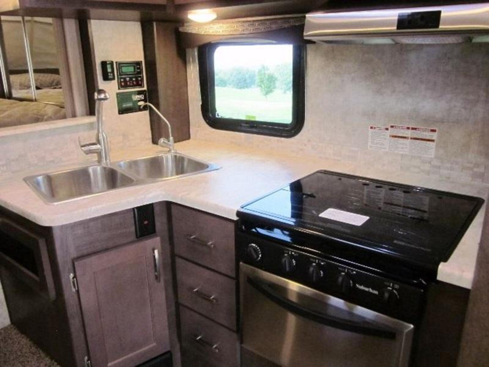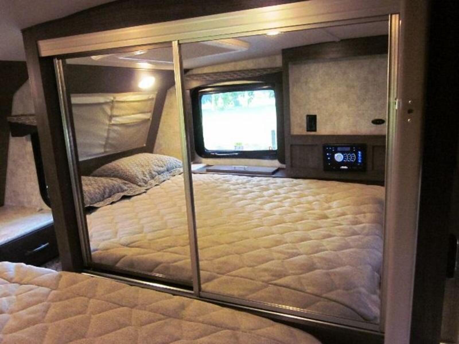 Want to take the kids or grand kids with you, then this is the one sofa and dinette both make into beds and when you add the largest dry bath in the industry to this camper you truly are home away from home with this one!