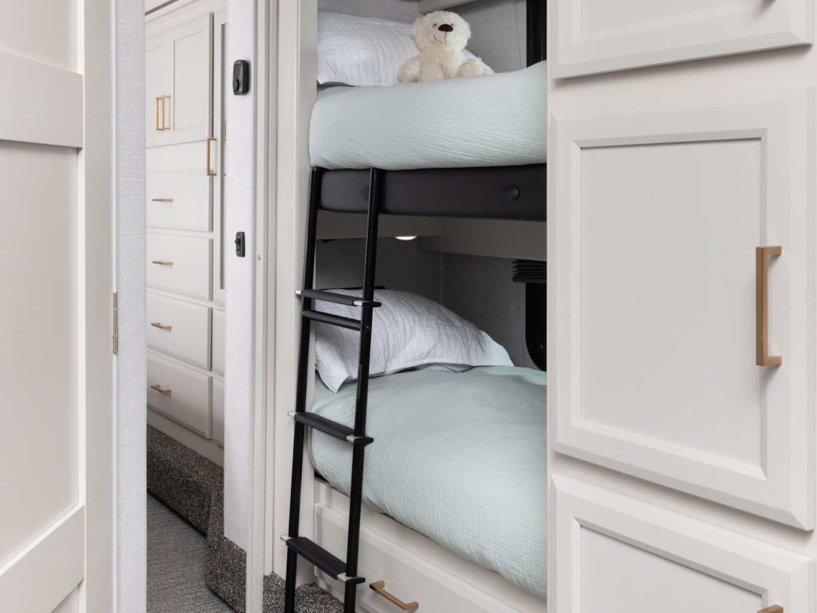 Rest easy with multiple sleeping options including a master queen bed and overhead bunk