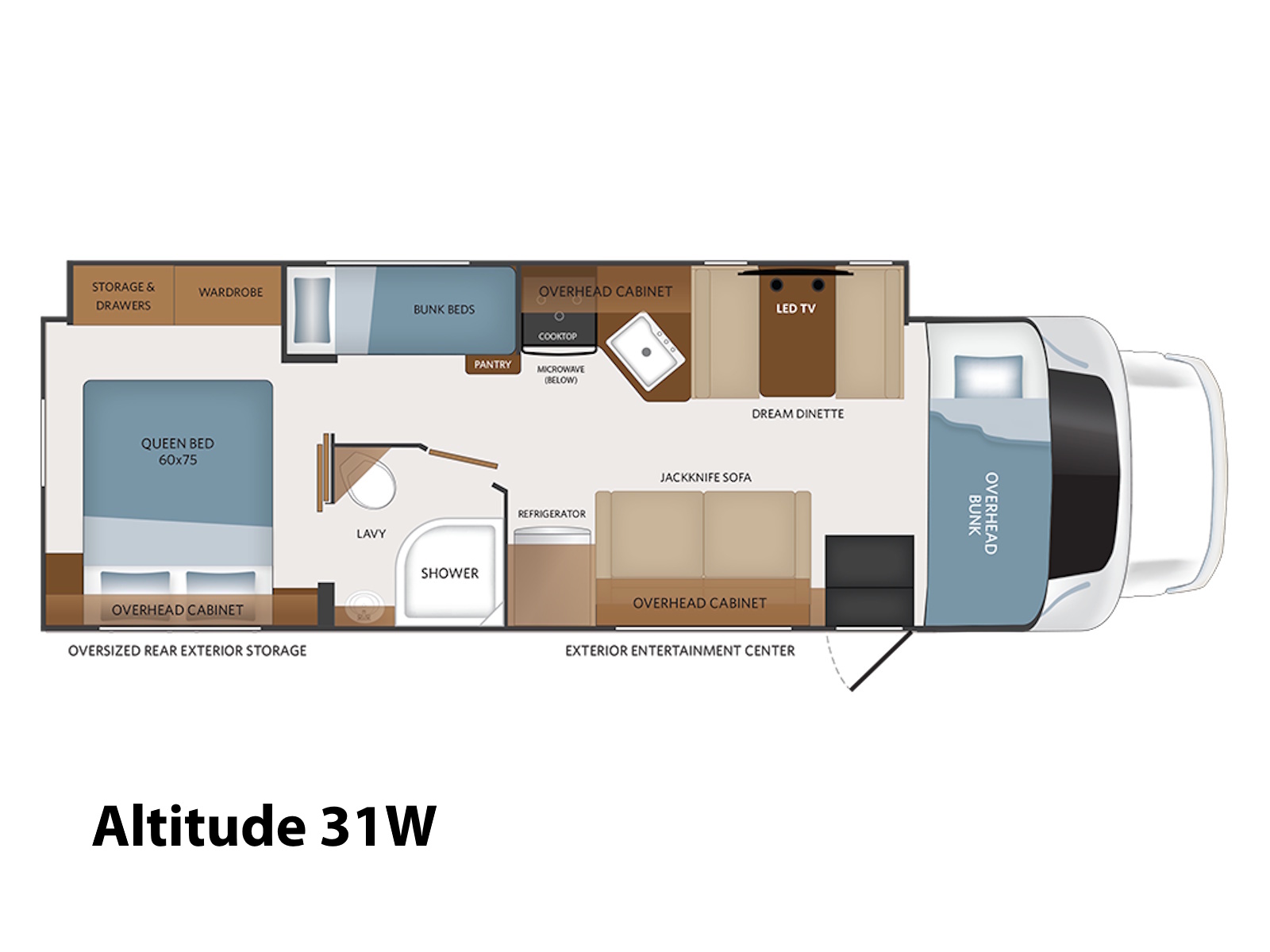 Leading the way in class C comfort and design, the Altitude features the industry’s largest radiused entry door for enhanced security and convenience