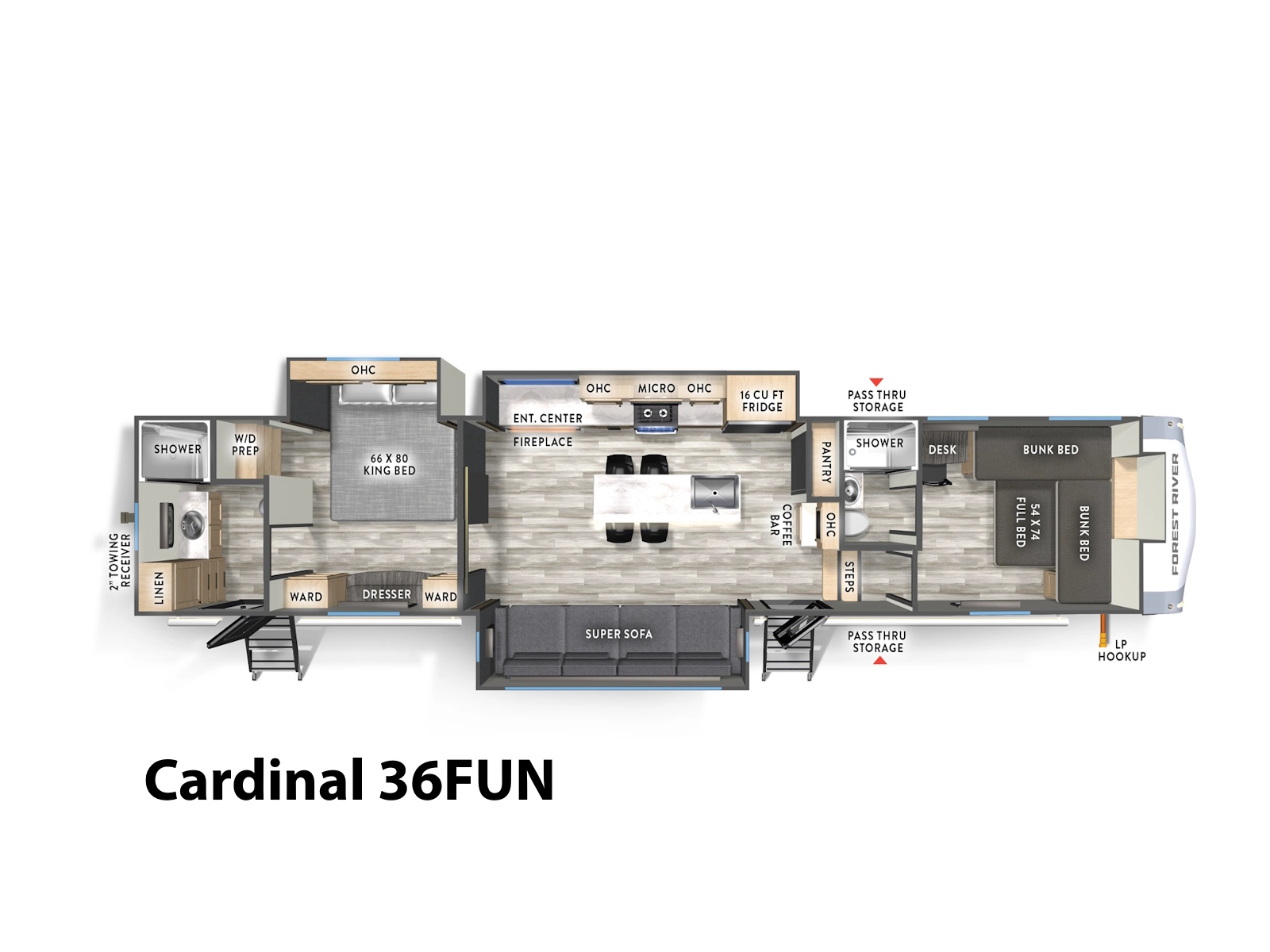 Cardinal is one of the oldest and most respected fifth wheel brands in the country, known for being Forest River's first full-profile luxury fifth wheel. The Cardinal design is crafted for all types of campers, whether you're on an extended stay, road-tripping from Montana to Florida, or enjoying a weekend close to home. Cardinal brings affordable luxury back to camping!