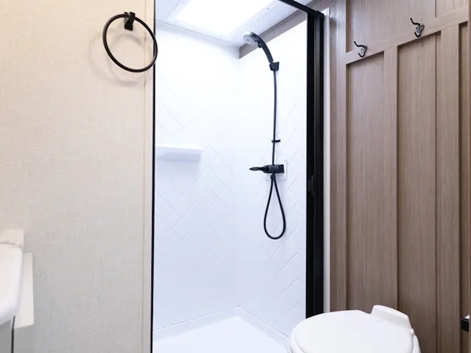 Outside | Adjustable Power | Walk-In Shower with Skylight | Anti-Bacterial Shower Door