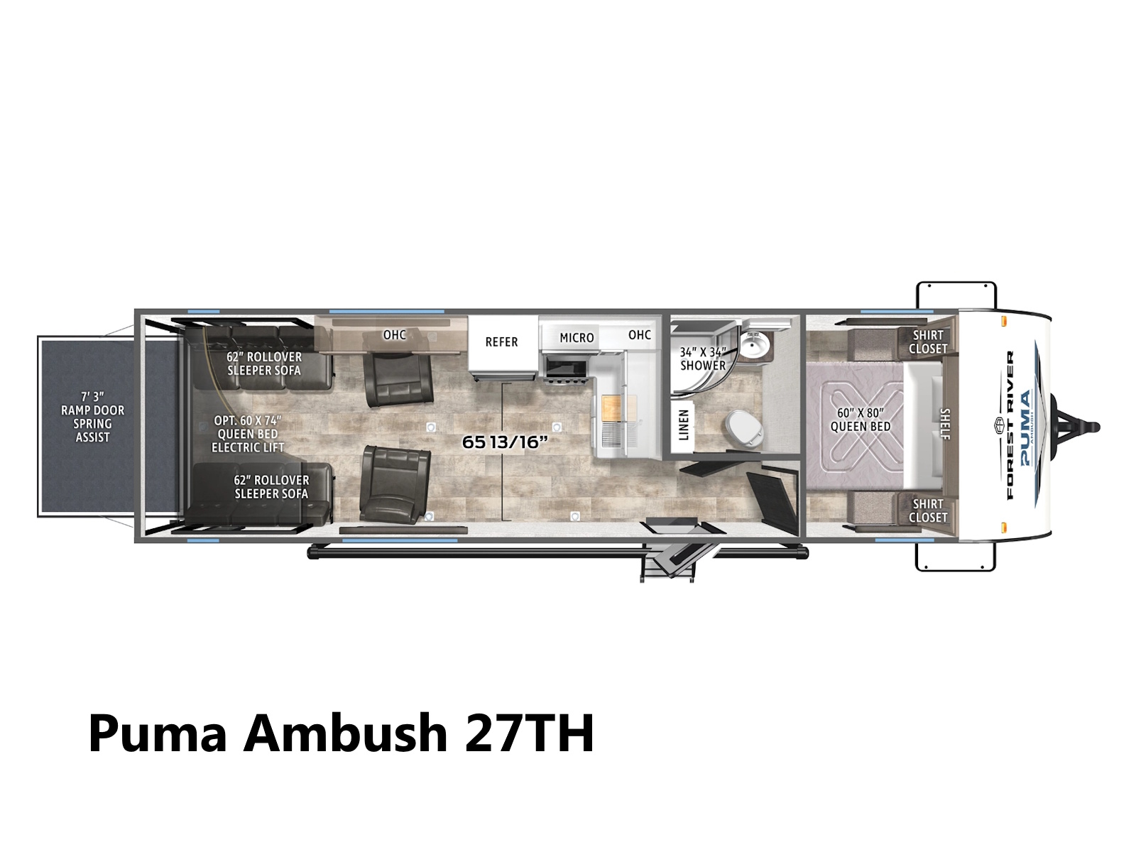 Puma Ambush Toy Haulers offer you the best of both worlds. Camping and being able to bring your toys along for the adventure. Whether you are going to the outback, beach, or mountains, your Puma Unleashed Toy Hauler makes your journey a comfortable and exciting outdoor adventure the entire family will never forget. So load up the family and the toys and go RVing, today!