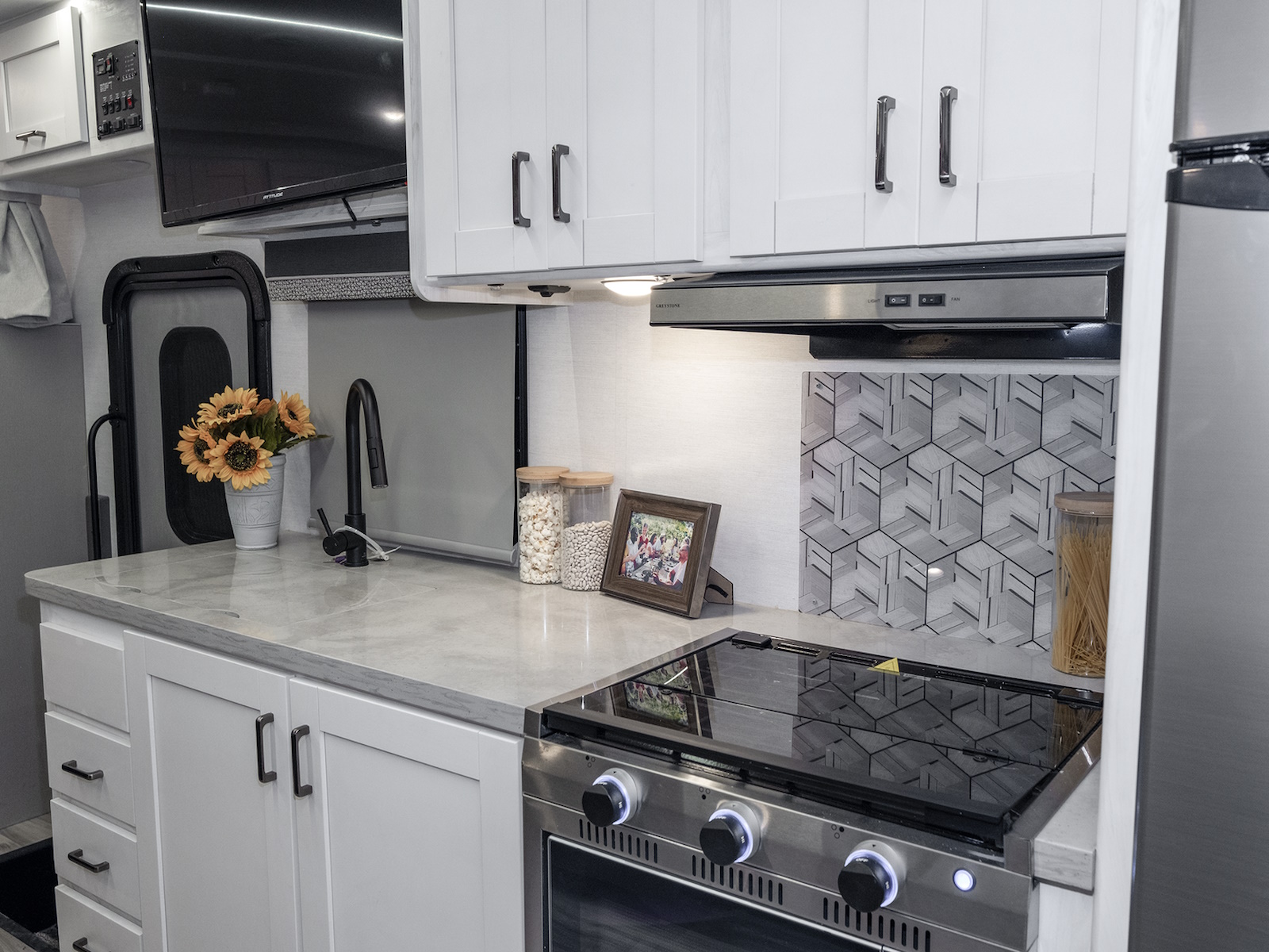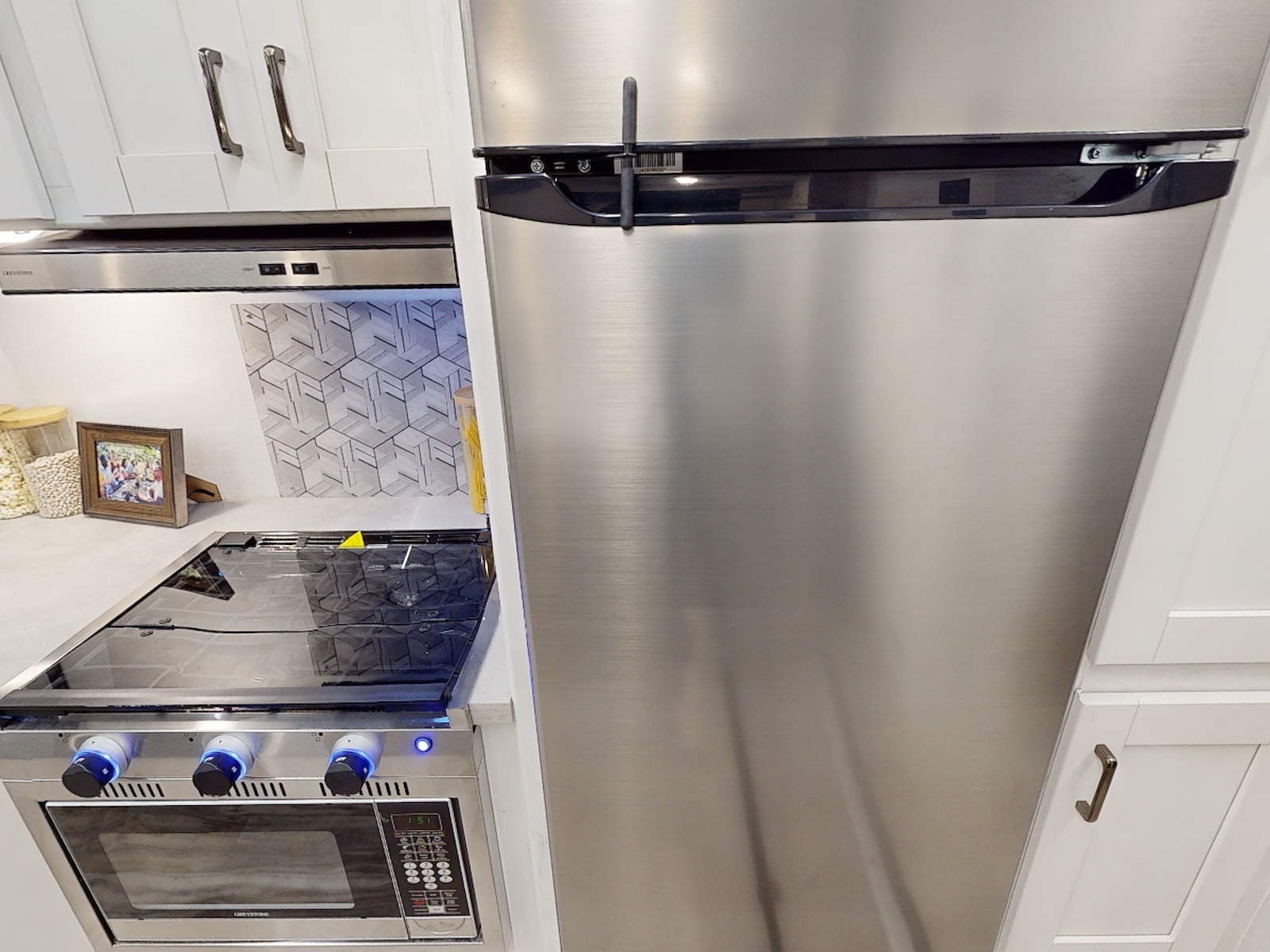 - Oven with 3-burner range and vent hood