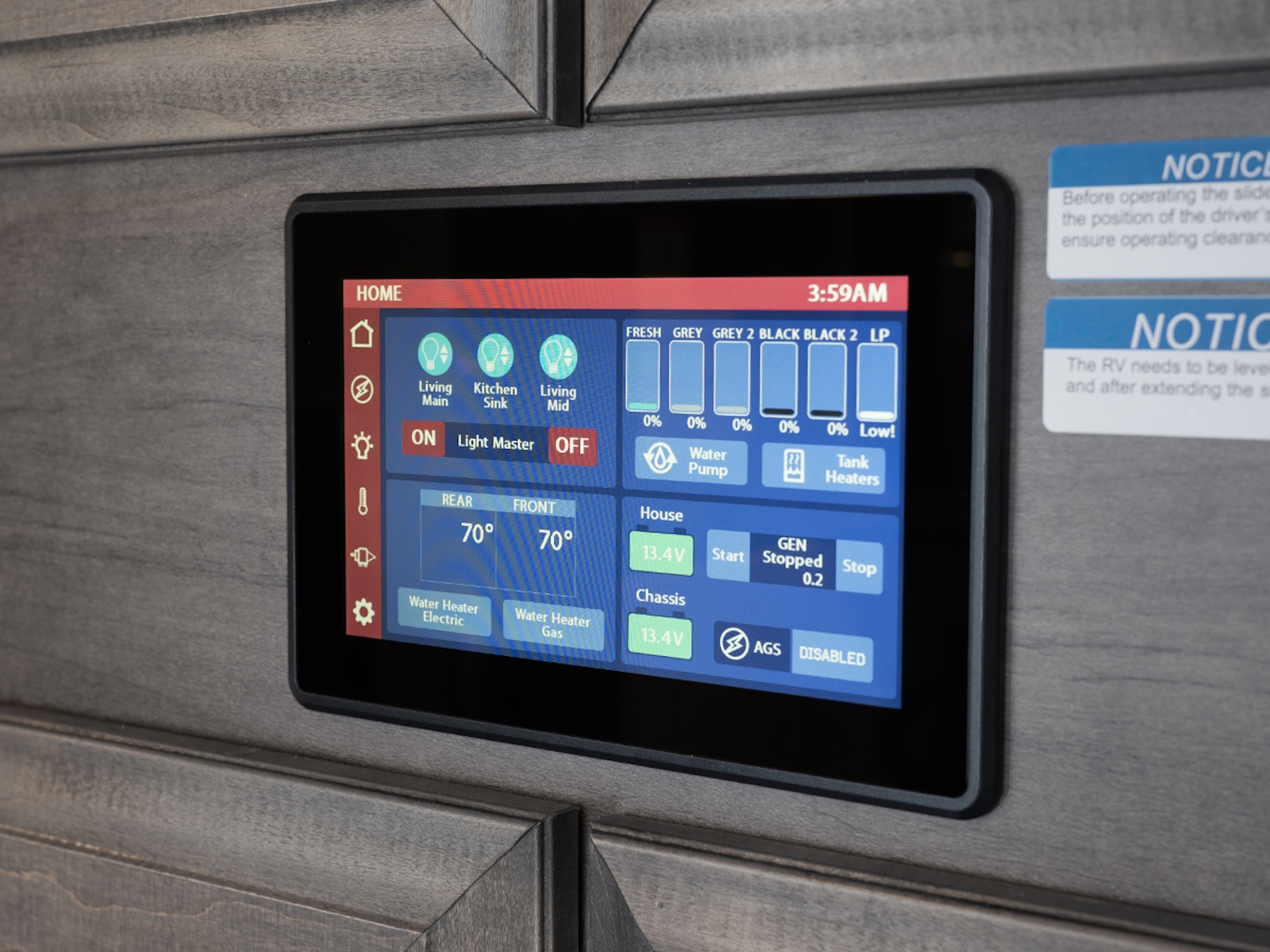 - Firefly total coach control system with wall-mounted touchscreen and mobile app