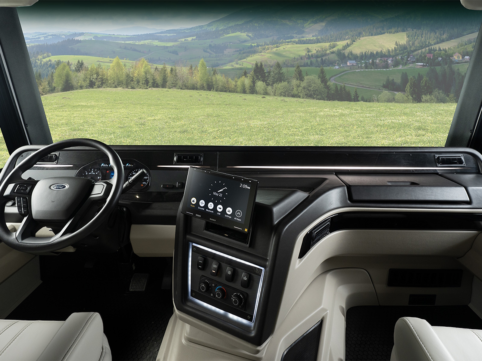 The Firefly total coach control system takes smart travel to the next level. A 7-inch touchscreen and mobile app lets you manage lights, climate, and more—even when you’re sitting by the campfire. Need to cool the coach down for pets? Done. Want to turn on the lights before heading inside? Easy.