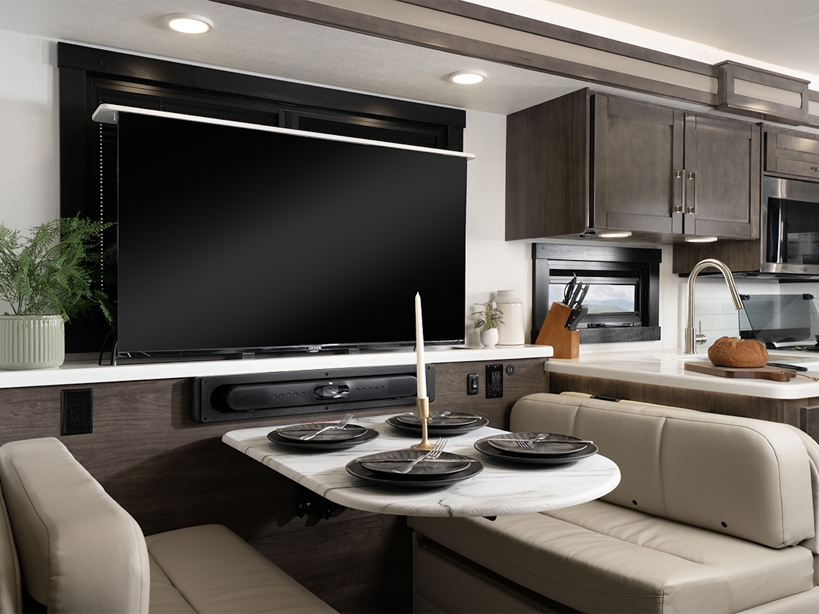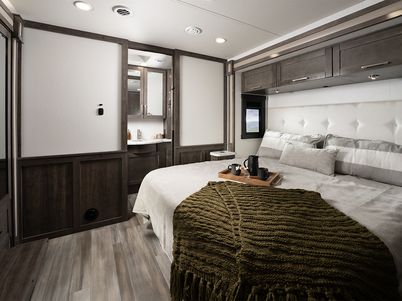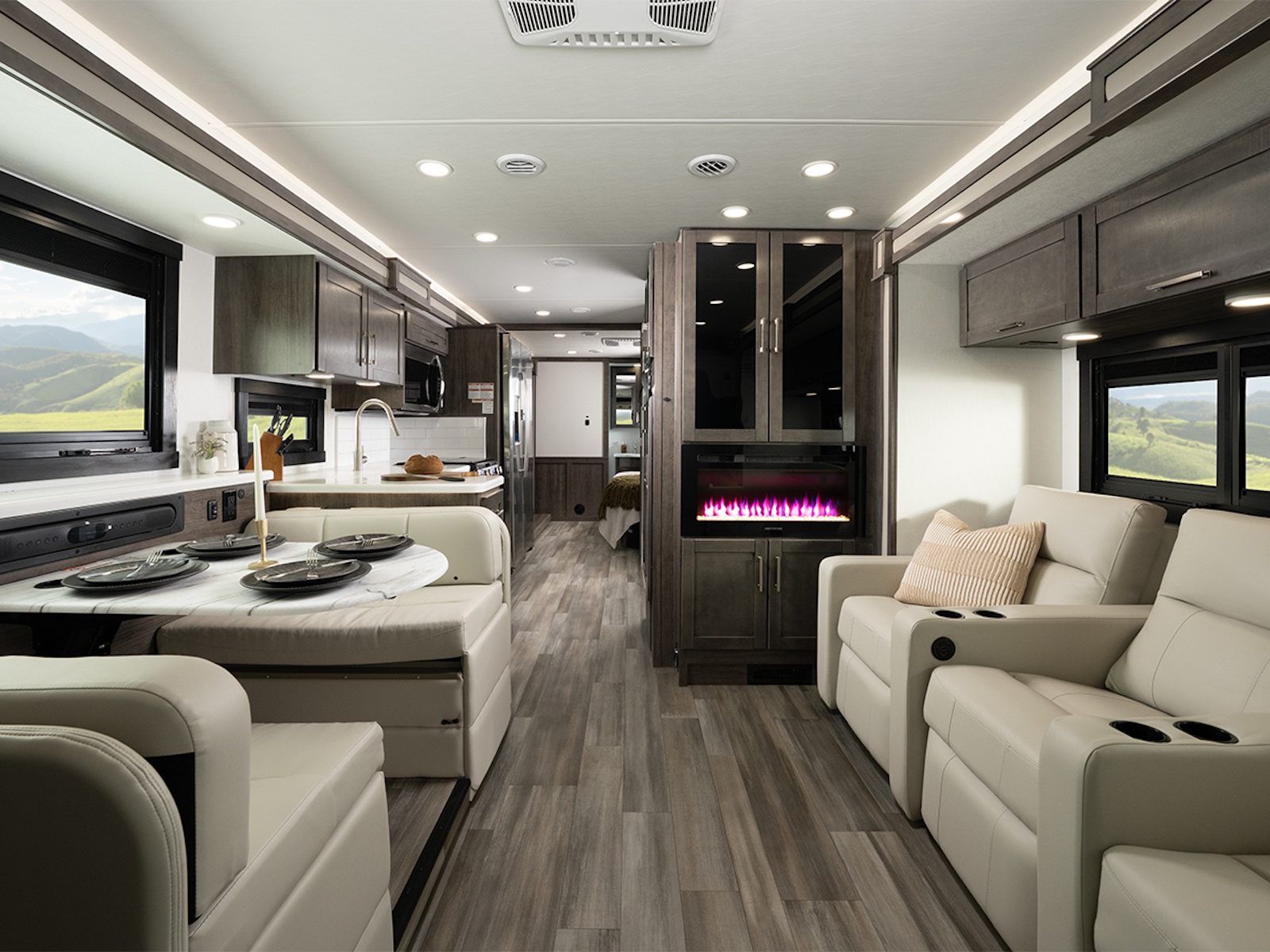 The Firefly total coach control system takes smart travel to the next level. A 7-inch touchscreen and mobile app lets you manage lights, climate, and more—even when you’re sitting by the campfire. Need to cool the coach down for pets? Done. Want to turn on the lights before heading inside? Easy.