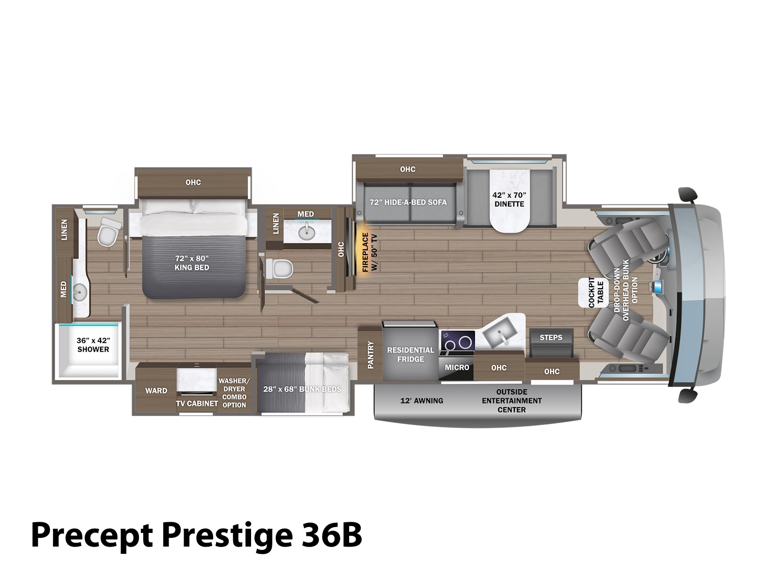 With top-tier comfort, smart features, and thoughtful safety touches, the Precept Prestige is the perfect blend of luxury and practicality. When you’re ready to hit the road in lasting style, this is the coach that will take you there—and beyond.