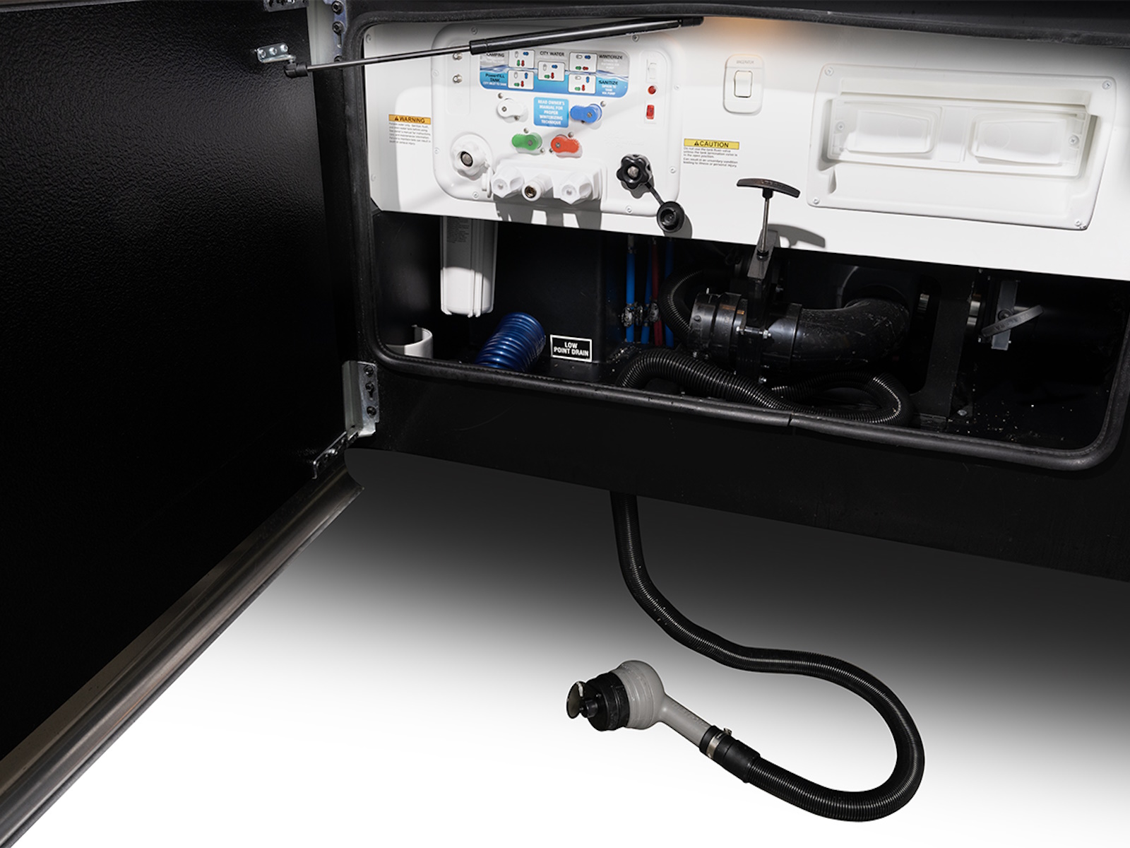One of the least fun parts of RV life? Emptying the tanks. Thankfully, the Precept Prestige makes a notoriously messy task clean and simple with the Thetford® Sani-Con® Turbo macerator system. It features a built-in macerator and retractable hose so you don’t have to worry about clogs or deal with hooking and unhooking your hose each time. To top it off, the system's powerful pump even allows you to dump uphill.