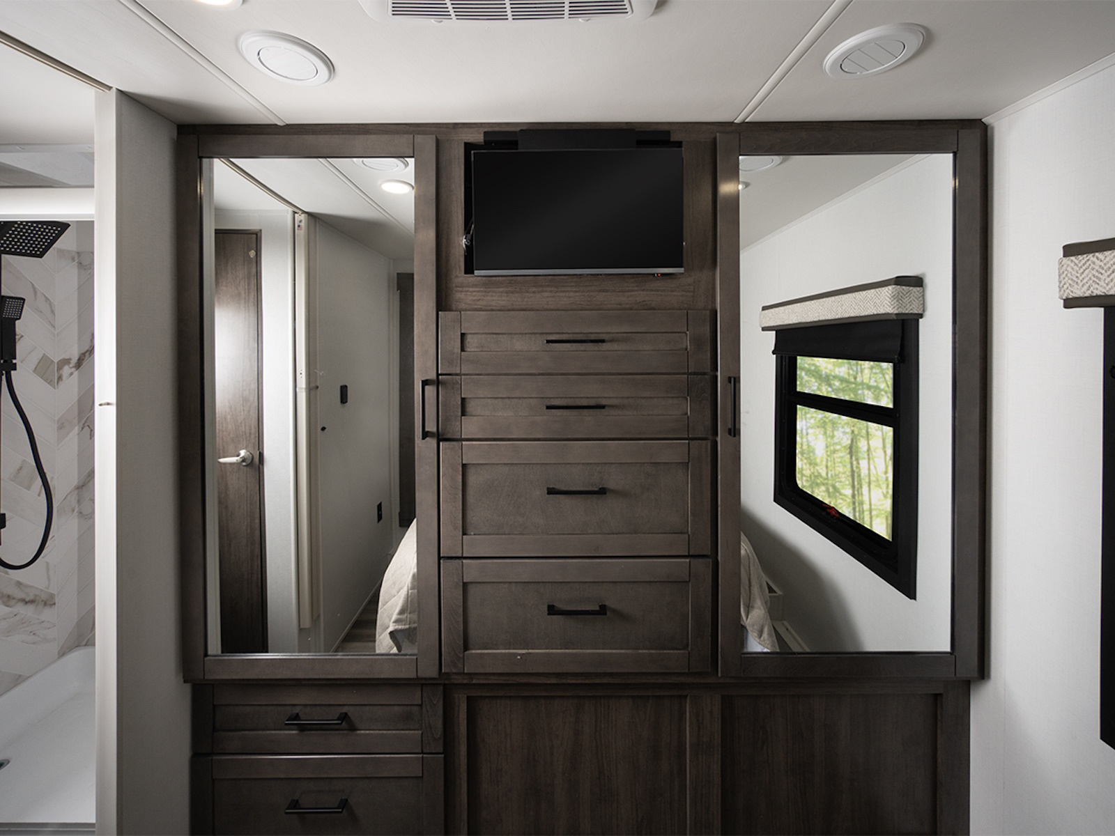 - Fiberglass exterior walls with vinyl graphics