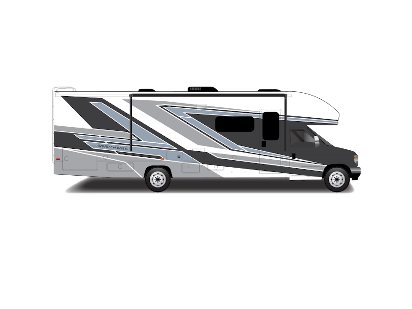The 2026 Greyhawk is Jayco's amenity-rich, top-of-the-line gas Class C motorhome. With features like a seamless, one-piece front cap, Jayco sets a high standard in the Class C category, giving owners greater durability and protection against moisture and debris. That means more time enjoying your RV and less time in the service bay. Built on the Ford® E-450 chassis, the Greyhawk looks as sharp as it handles. Its JRide® Plus ride and handling package includes a computer-balanced driveshaft, Koni® FSD shocks, heavy-duty rear stabilizer bar, front stabilizer bar, Hellwig® helper springs and rubber isolation mounts. Together, these components create a smooth, stable ride whether you’re on the highway or heading to a scenic campsite. Off-grid adventures are made easy with a 4,000W generator with auto-gen start and a 1,000W inverter. The generator draws from the fuel tank and automatically turns on when power is needed, giving you reliable energy without the hassle. To keep things cool and comfortable, the 15,000 BTU A/C with a heat pump comes standard, or you can choose optional dual A/Cs with a power management system that adjusts energy use to prevent overloads and keep things running smoothly.