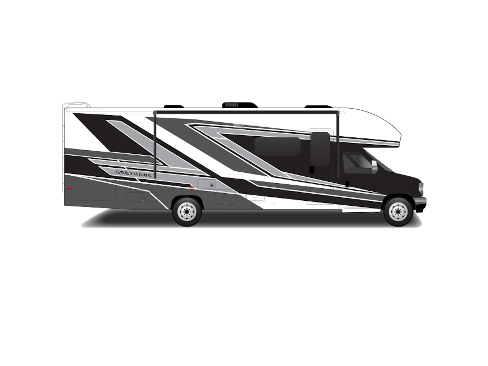 The 2026 Greyhawk is Jayco's amenity-rich, top-of-the-line gas Class C motorhome. With features like a seamless, one-piece front cap, Jayco sets a high standard in the Class C category, giving owners greater durability and protection against moisture and debris. That means more time enjoying your RV and less time in the service bay. Built on the Ford® E-450 chassis, the Greyhawk looks as sharp as it handles. Its JRide® Plus ride and handling package includes a computer-balanced driveshaft, Koni® FSD shocks, heavy-duty rear stabilizer bar, front stabilizer bar, Hellwig® helper springs and rubber isolation mounts. Together, these components create a smooth, stable ride whether you’re on the highway or heading to a scenic campsite. Off-grid adventures are made easy with a 4,000W generator with auto-gen start and a 1,000W inverter. The generator draws from the fuel tank and automatically turns on when power is needed, giving you reliable energy without the hassle. To keep things cool and comfortable, the 15,000 BTU A/C with a heat pump comes standard, or you can choose optional dual A/Cs with a power management system that adjusts energy use to prevent overloads and keep things running smoothly.