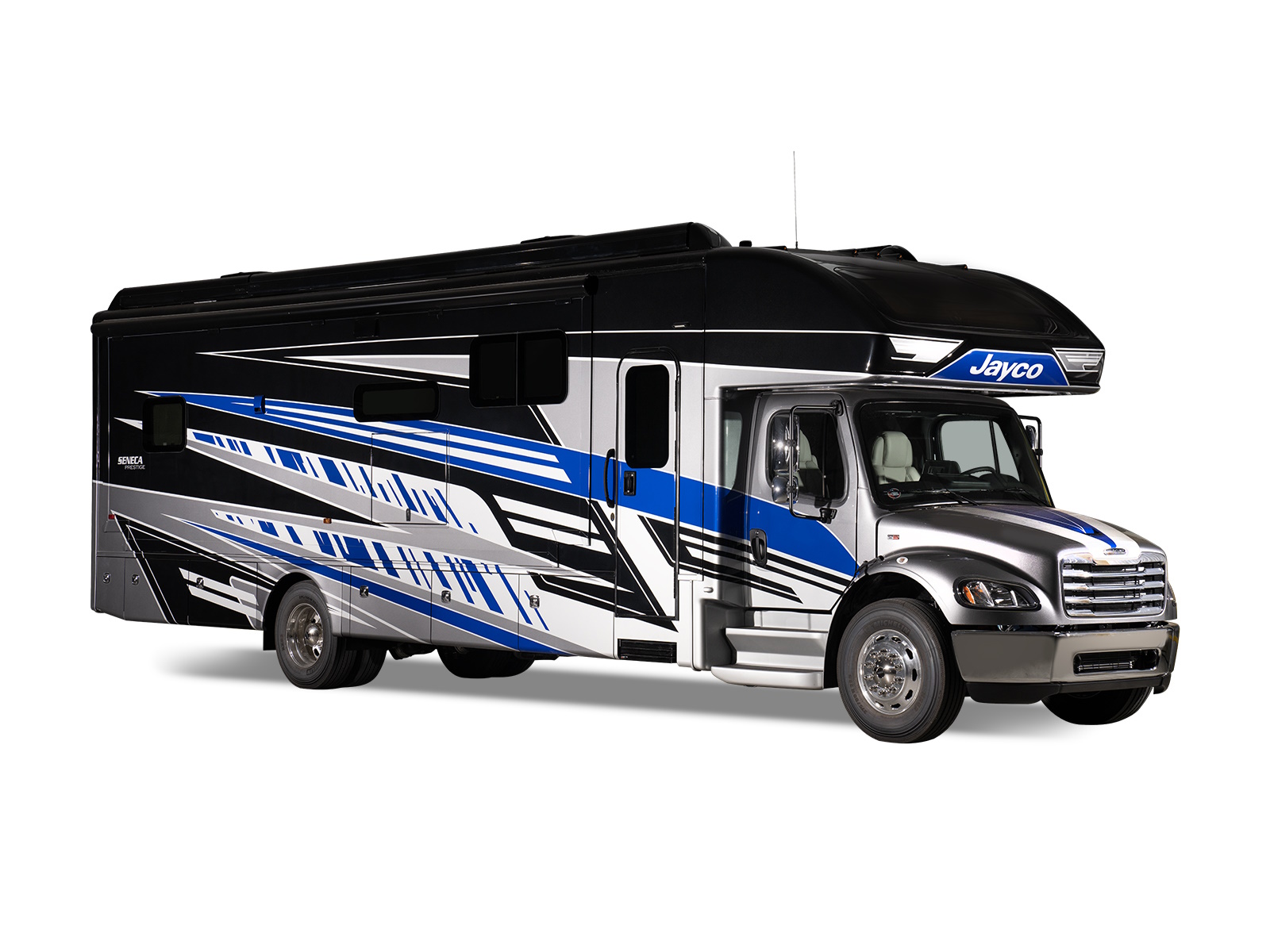 The Seneca Prestige is built on the sturdy Freightliner® S2RV Plus chassis and powered by a diesel engine that’s made to go the distance. Our most advanced ride and handling package, JRide® Premium, comes standard—featuring upgraded SACHS shocks, a computer-balanced driveshaft, rear air suspension, a heavy-duty rear stabilizer bar and full air brakes—so you’ll enjoy a smooth, quiet ride no matter where the road takes you.