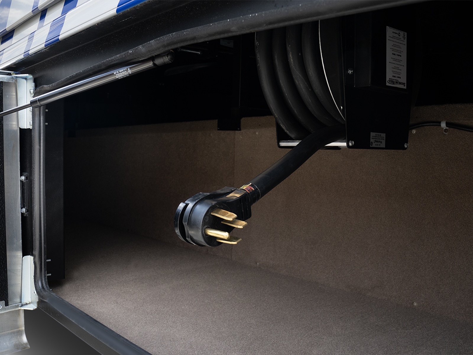 - Carpeted, full pass-through storage compartments with lockable slam latch doors