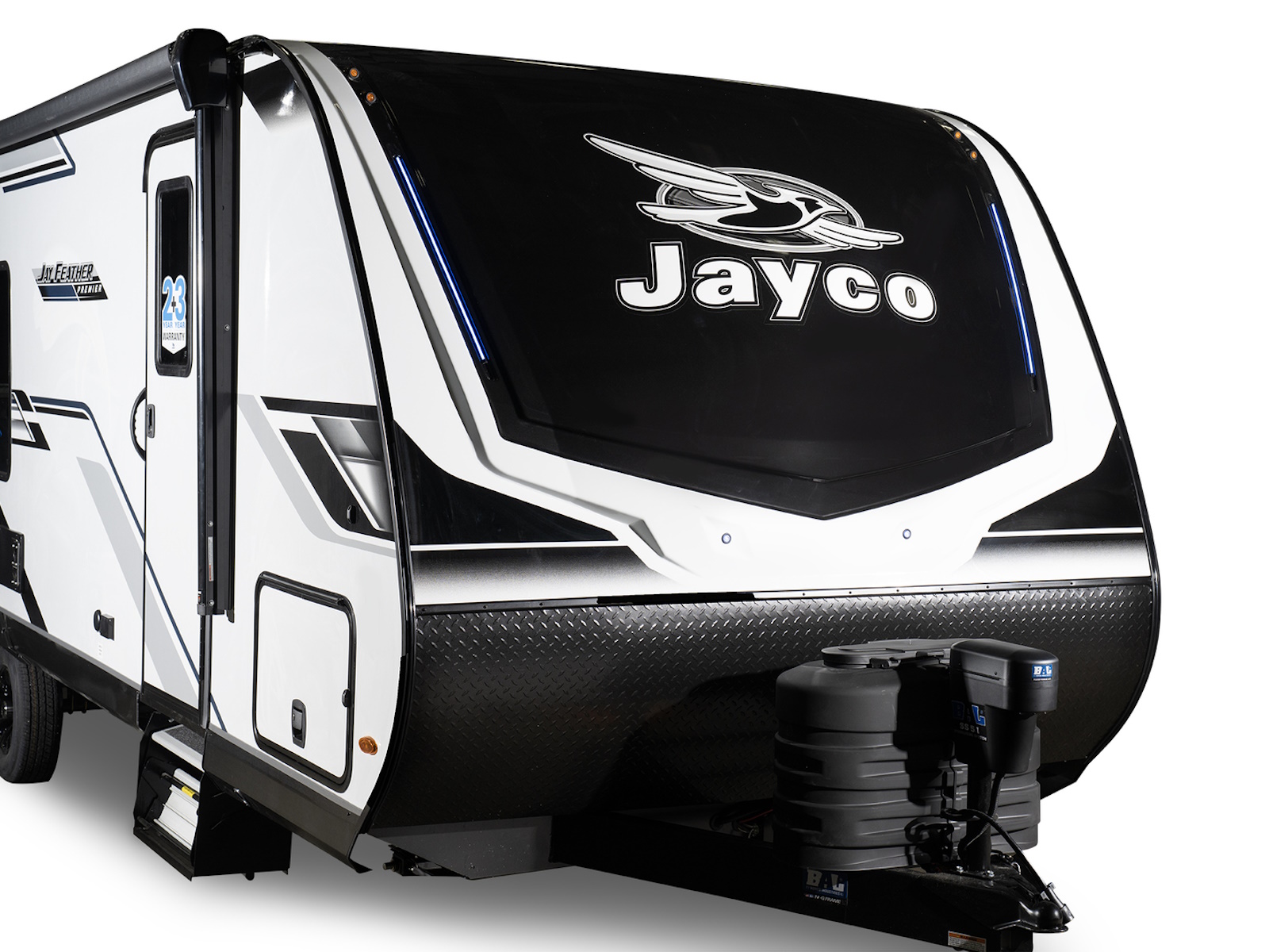 Beyond what’s immediately visible, the Jay Feather also has the new 13,500 BTU Coleman Mach Quiet Series A/C, which is more efficient and 10% quieter than other brands. That means, not only are you getting your desired temperature in your RV, but you don't have to shout over the noise of the A/C. Are you looking for a more robust A/C system? Not to worry, you can upgrade to a 15,000 BTU A/C. Most larger models are optional with 50 AMP service, allowing you to easily option a second, and even a third, 13,500 BTU direct-dump A/C for an even cooler sleeping space.