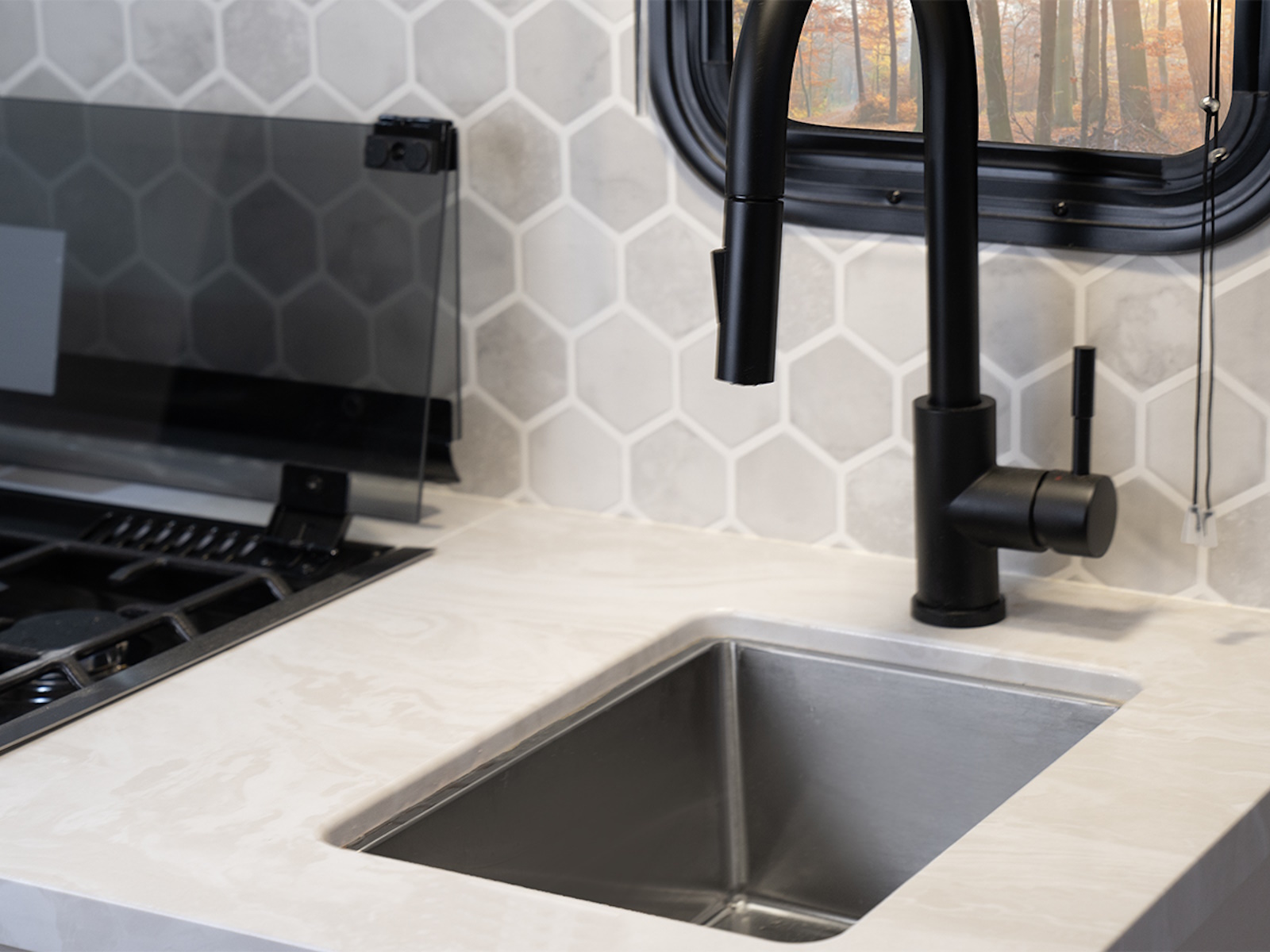 - Seamless countertops throughout