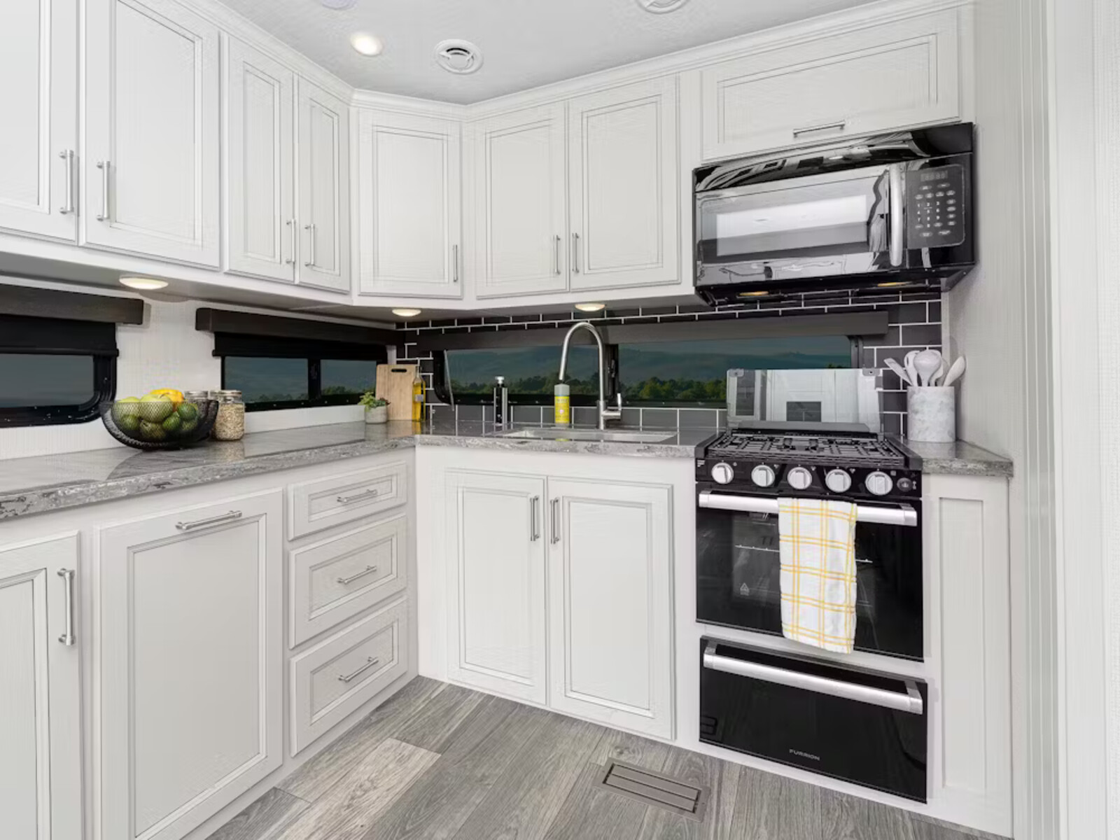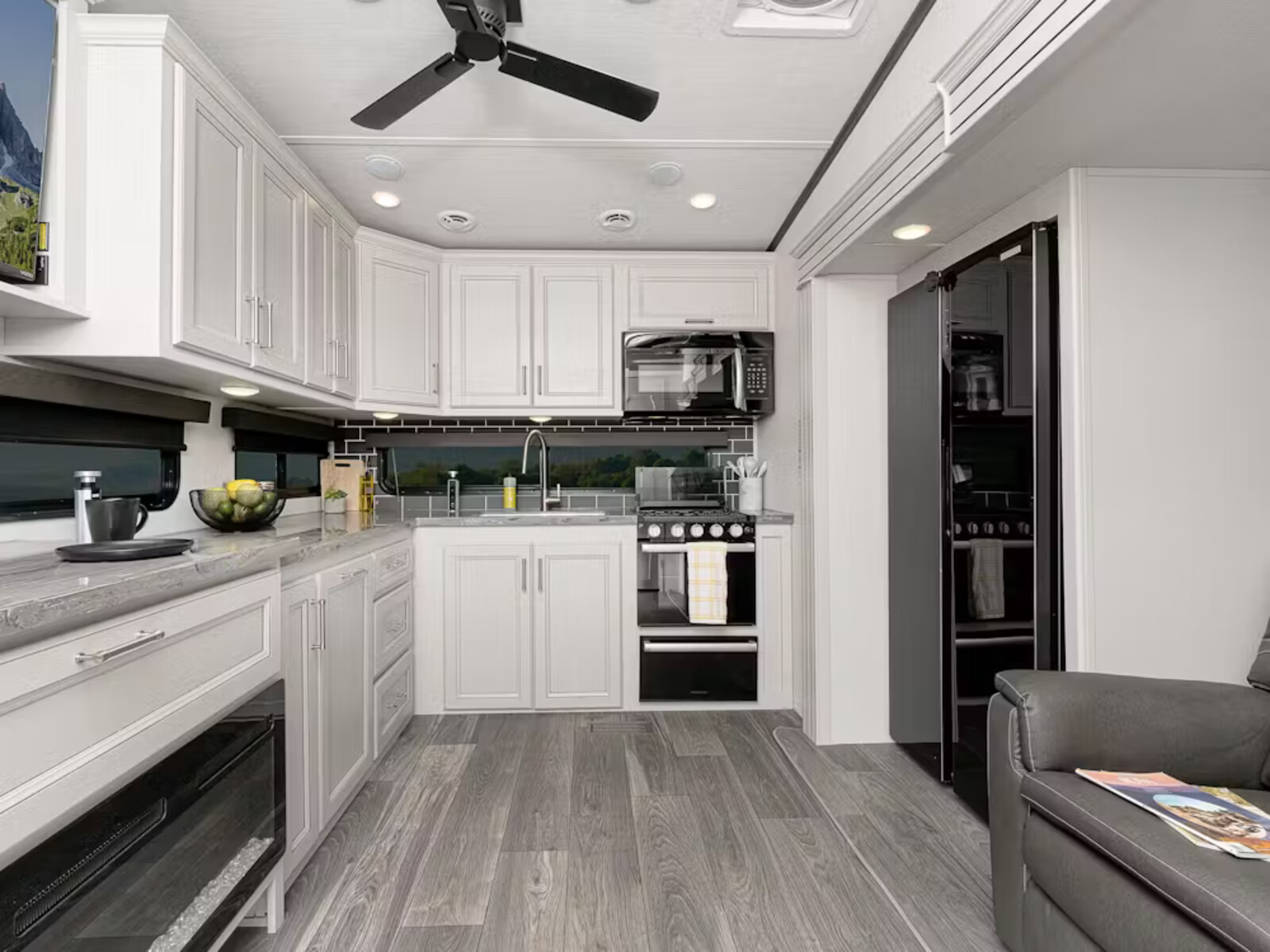 - 21" Furrion® range w/ Piezo ignition and glass stovetop cover