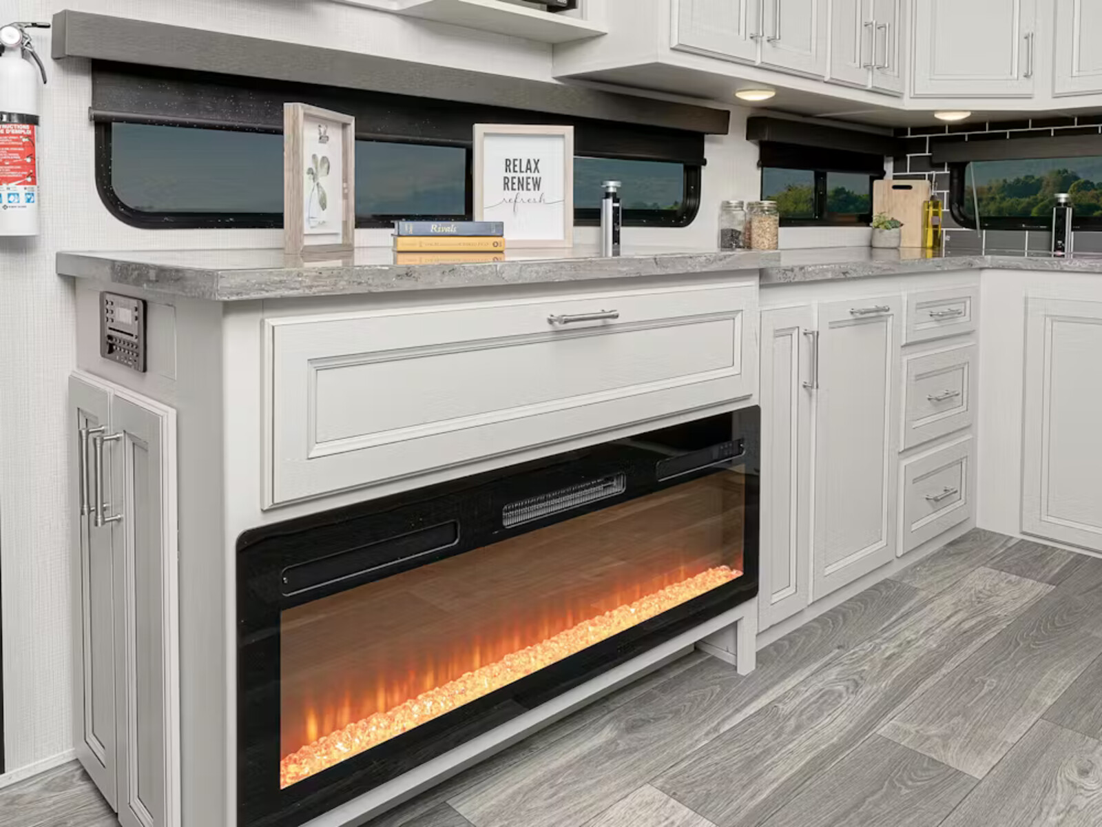 Breakaway switch | GFI receptacles | Carbon monoxide detector | Smoke detector | Propane gas leak detector | Fire extinguisher
