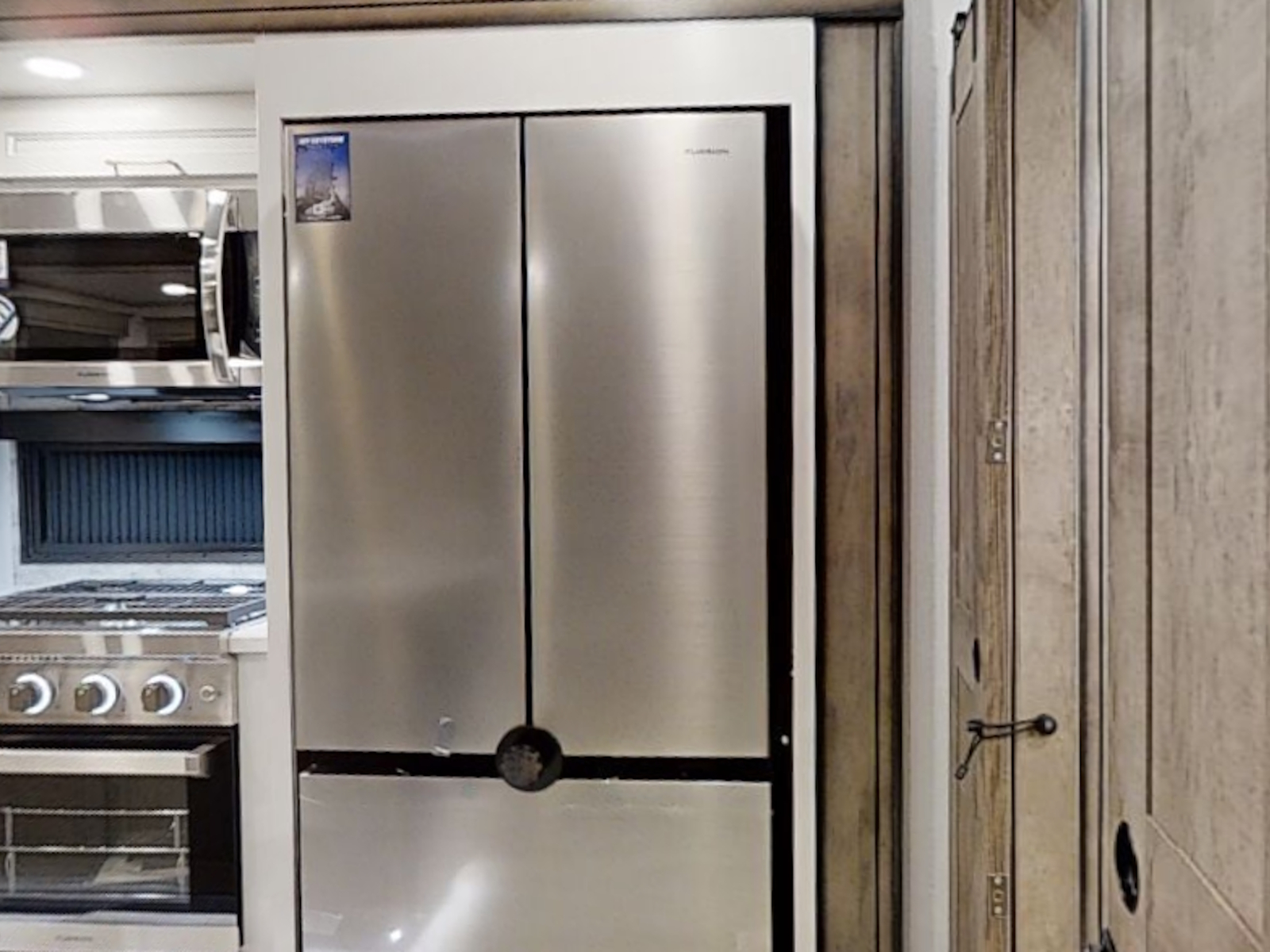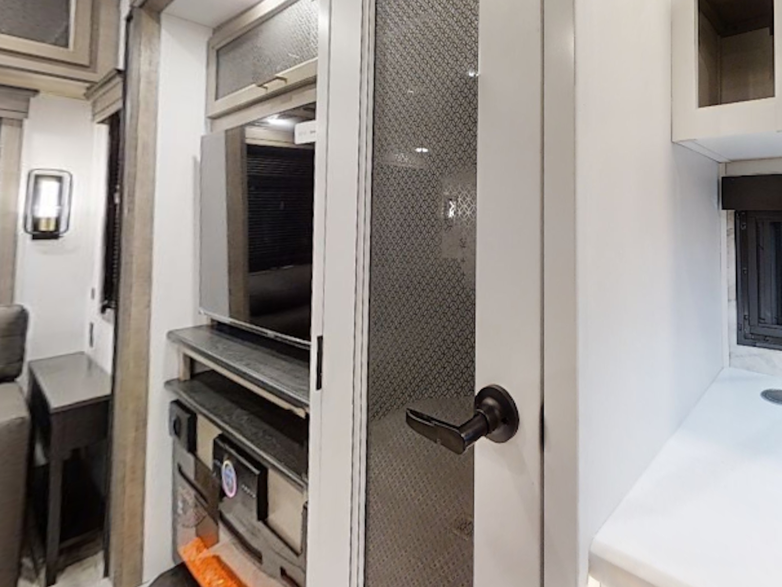 Large pass through storage w/ oversized slam latch door