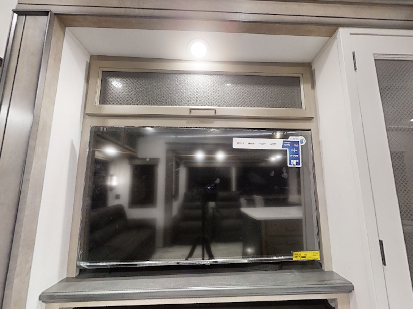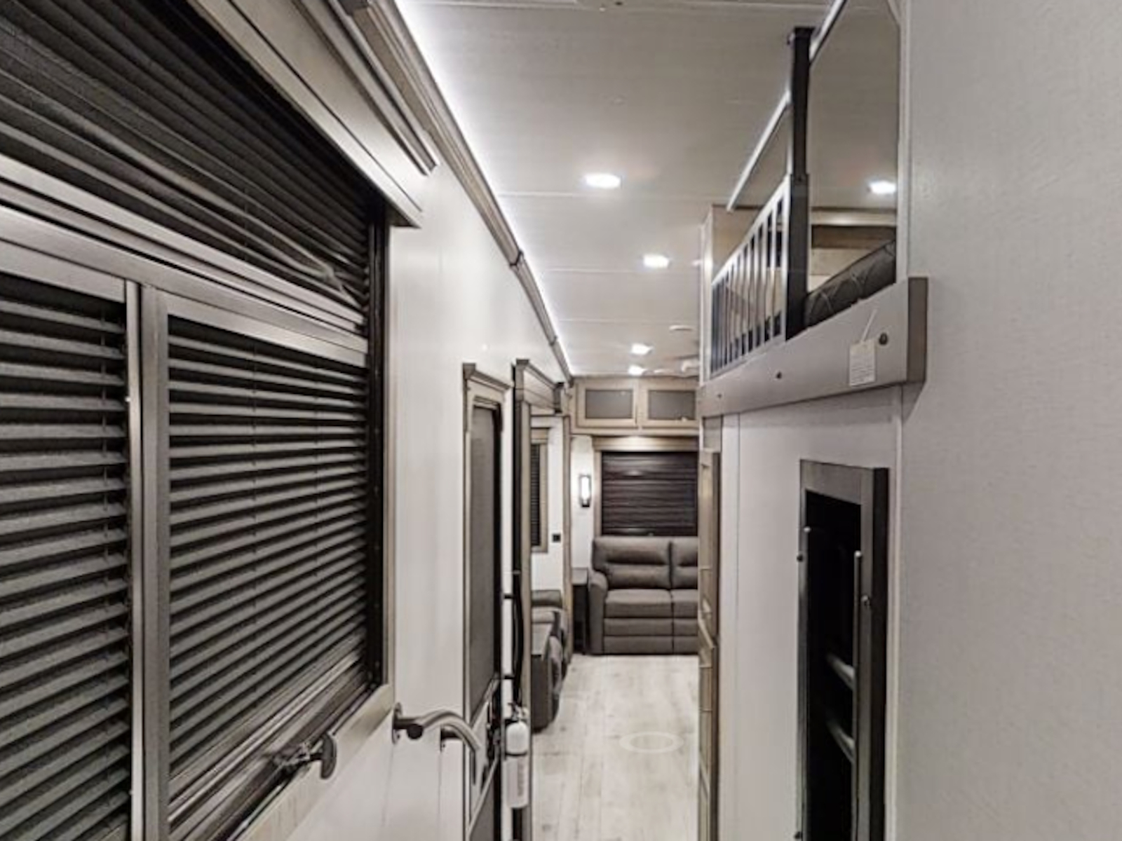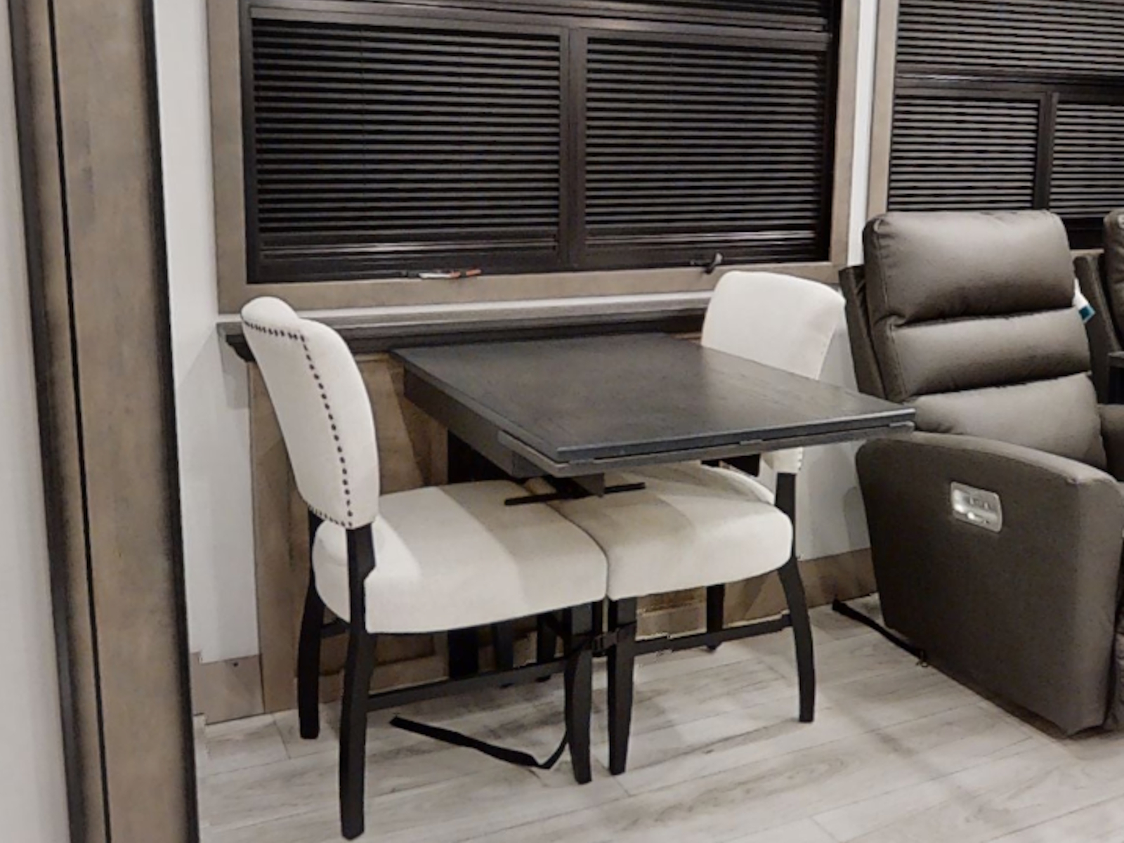 Beauflor® vinyl flooring throughout | Hardwood decorative slideout fascia | Reflective window shades built into window | Hardwood decorative window frames | Hardwood cabinetry, stiles, & framing | La-Z-Boy Furniture Package | Decorative backlit crown molding in living area, hardwood base molding in hallway and living area | 5K BTU decorative fireplace heater | Central vacuum
