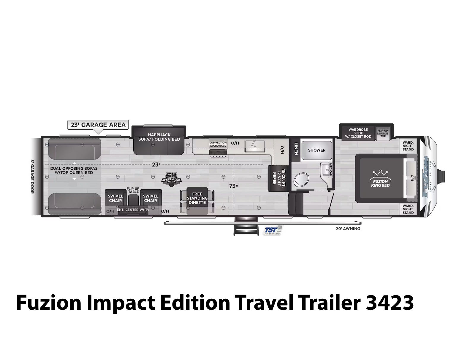 Let's be honest, if you're looking for a toy hauler fifth wheel, you're likely to have a gear habit. Keystone Fuzion Impact Edition toy hauler fifth wheels offer weekend warriors a lineup of shorter models - all with the same robust construction as the brand's big brother.