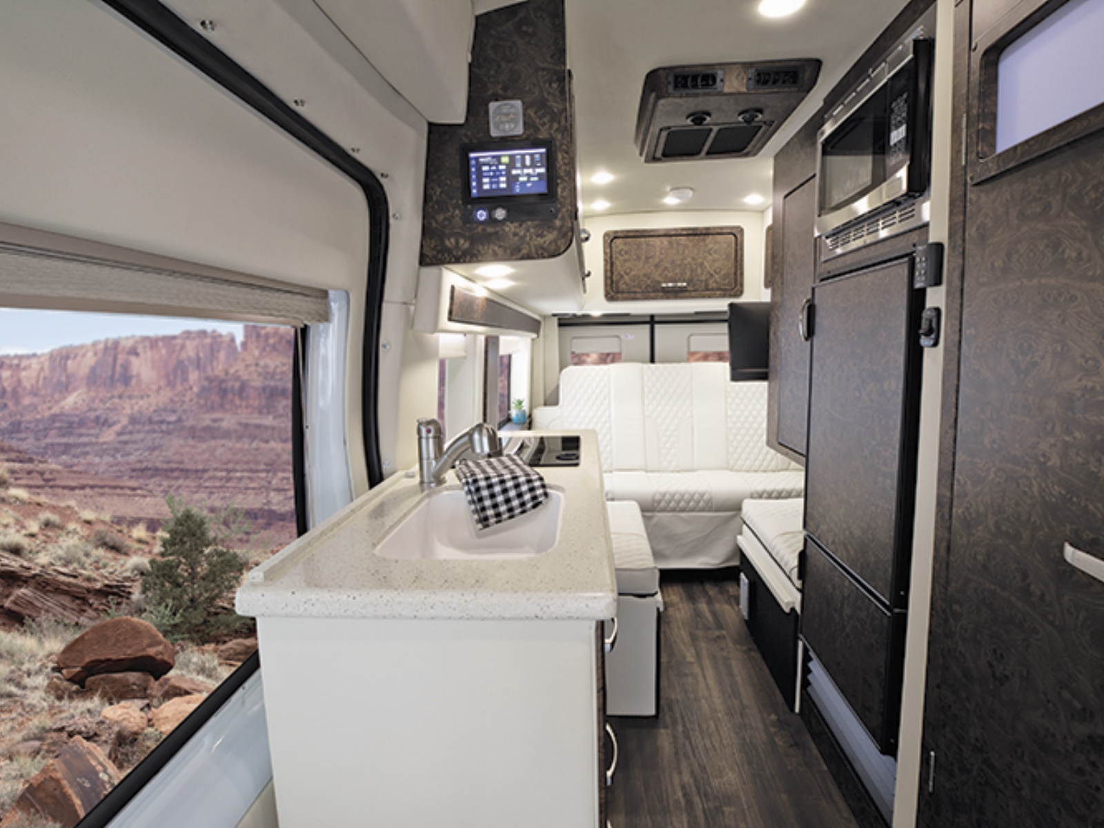 Inside, you’ll find beautifully crafted wood interiors and custom seating that rival any in the industry, ensuring unparalleled fit and finish. The Ford Passage also comes standard with our advanced Freedom Package, a pioneering lithium system that eliminates the need for propane gas, setting a new standard in the market.