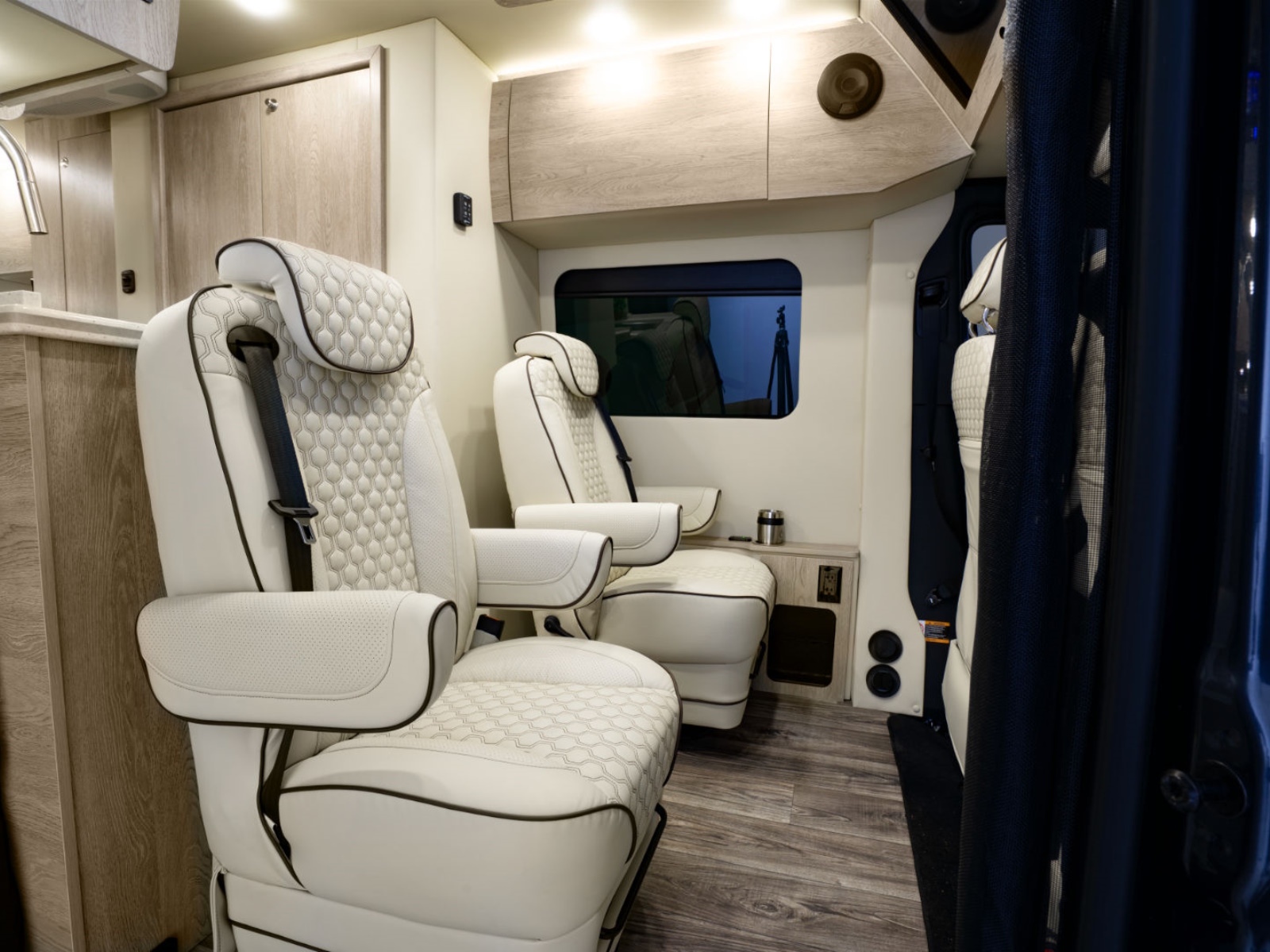 The Heritage distinguishes itself from the Patriot and Passage with some notable differences. The most noticeable feature of the Heritage is the integration of radius laminated cabinetry. This innovative cabinetry is not only durable, but also introduces a fresh design element. With the new cabinetry, the Heritage boasts ambient halo lighting, creating a warm and inviting atmosphere for the customer’s travels.