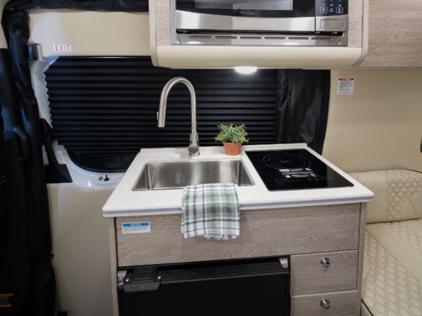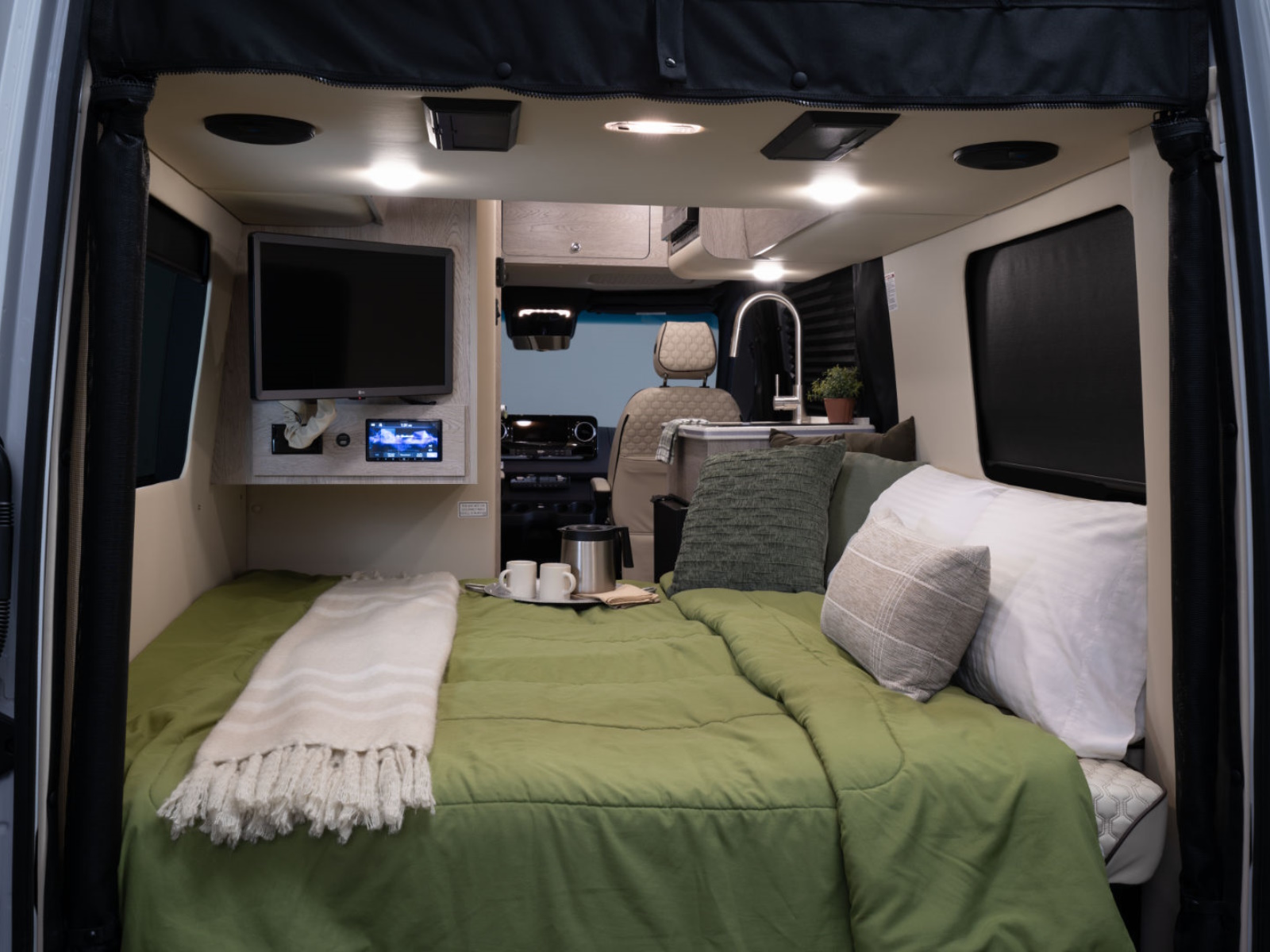 The Heritage distinguishes itself from the Patriot and Passage with some notable differences. The most noticeable feature of the Heritage is the integration of radius laminated cabinetry. This innovative cabinetry is not only durable, but also introduces a fresh design element. With the new cabinetry, the Heritage boasts ambient halo lighting, creating a warm and inviting atmosphere for the customer’s travels.