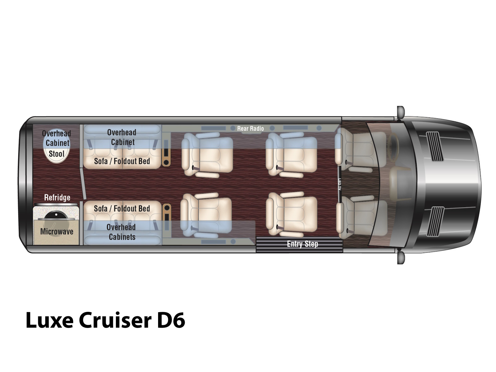 Unlike its counterpart, the Passage, the Luxe Cruiser is designed for those who seek unparalleled comfort and style while journeying from point A to B. Boasting an open floor plan and lavish seating arrangements, every moment spent inside feels like a first-class experience.