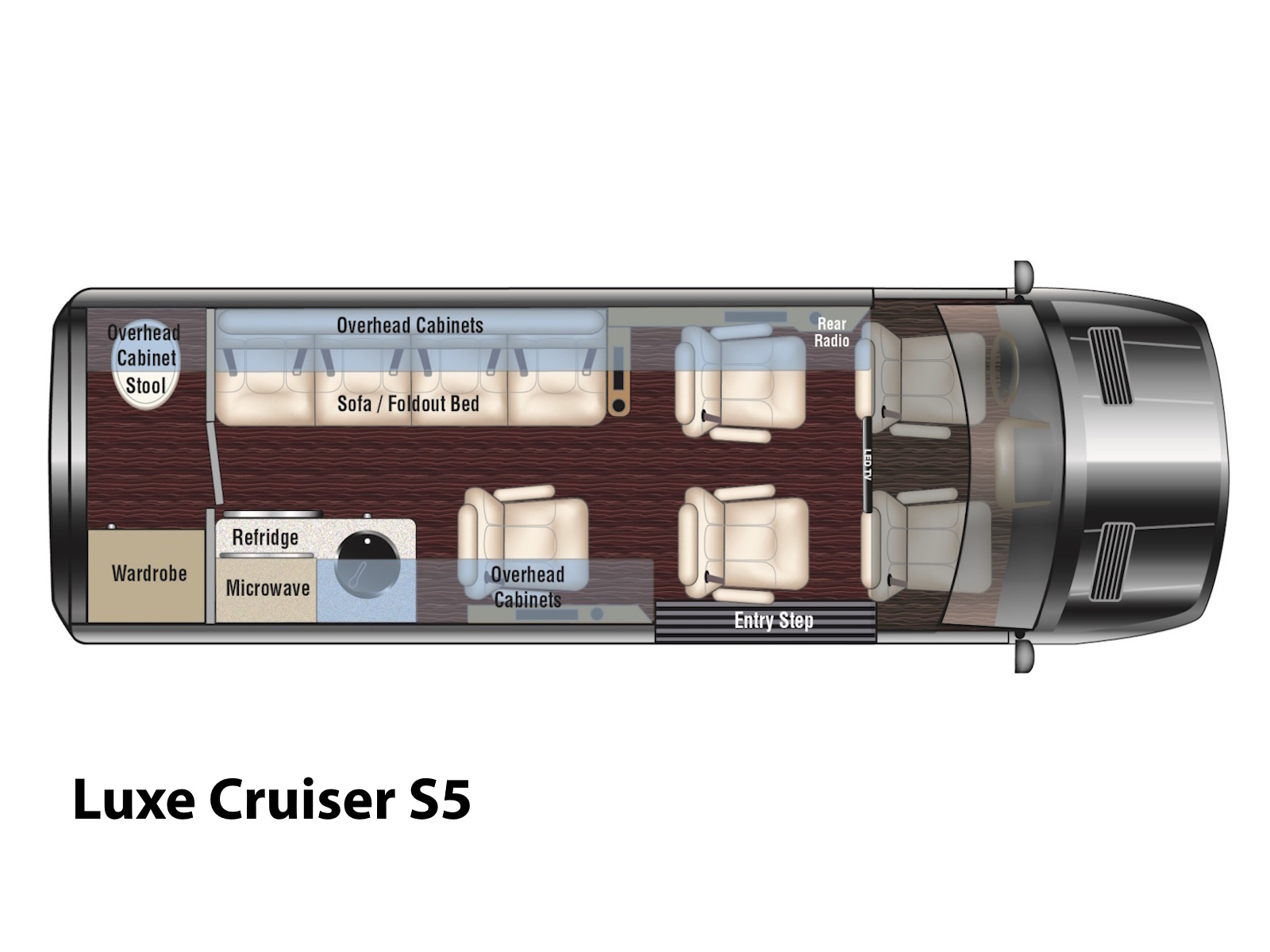 Unlike its counterpart, the Passage, the Luxe Cruiser is designed for those who seek unparalleled comfort and style while journeying from point A to B. Boasting an open floor plan and lavish seating arrangements, every moment spent inside feels like a first-class experience.