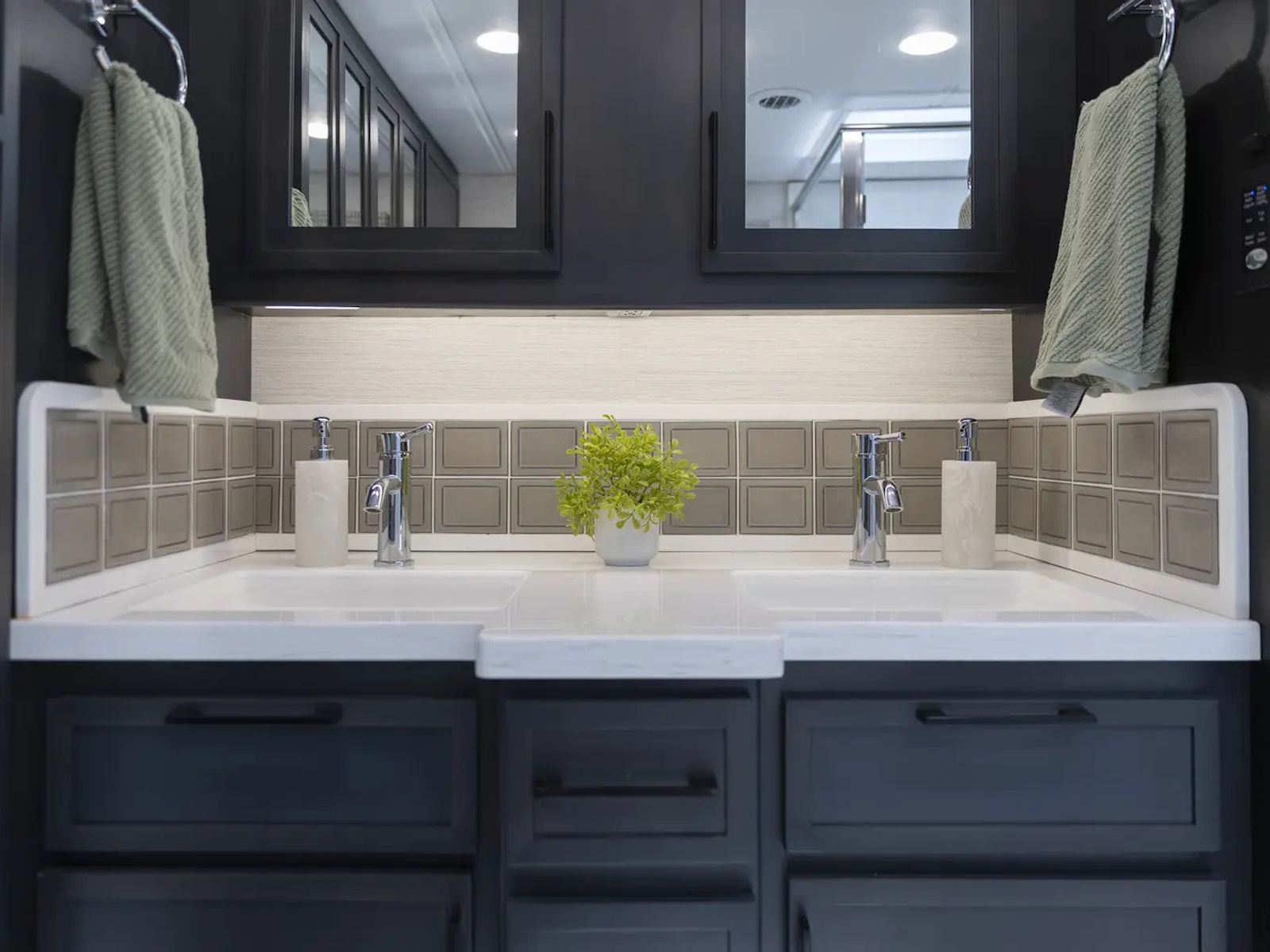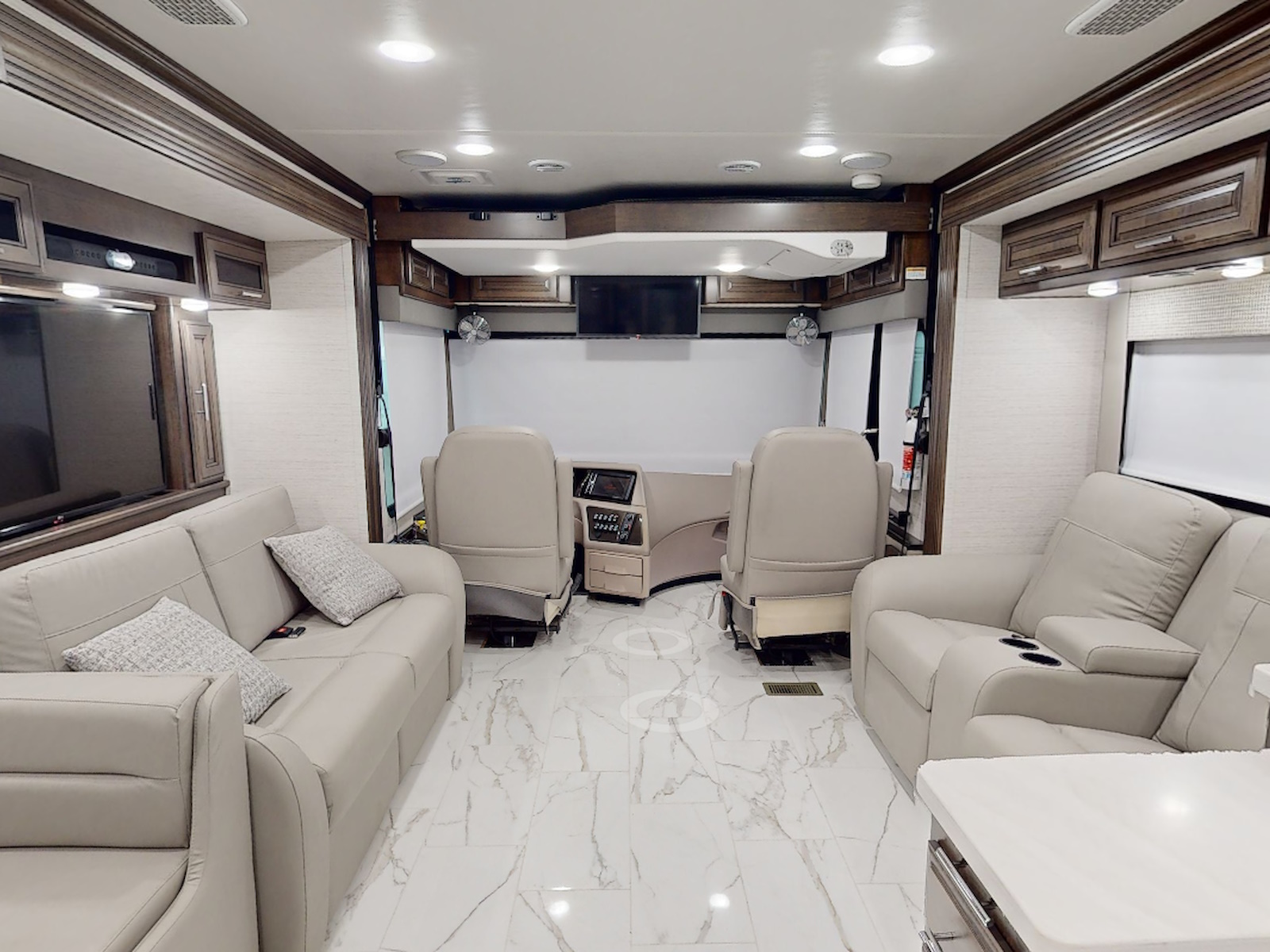 - Overhead cabinets in slide rooms w/soft close hinges