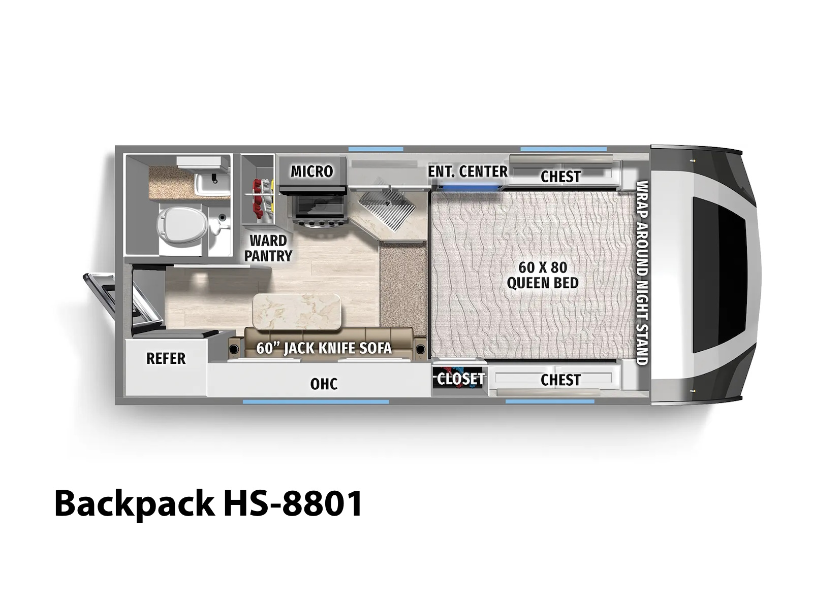 • 12V Refrigerator (3.3 cu ft on 750 / 11 cu ft 8801)