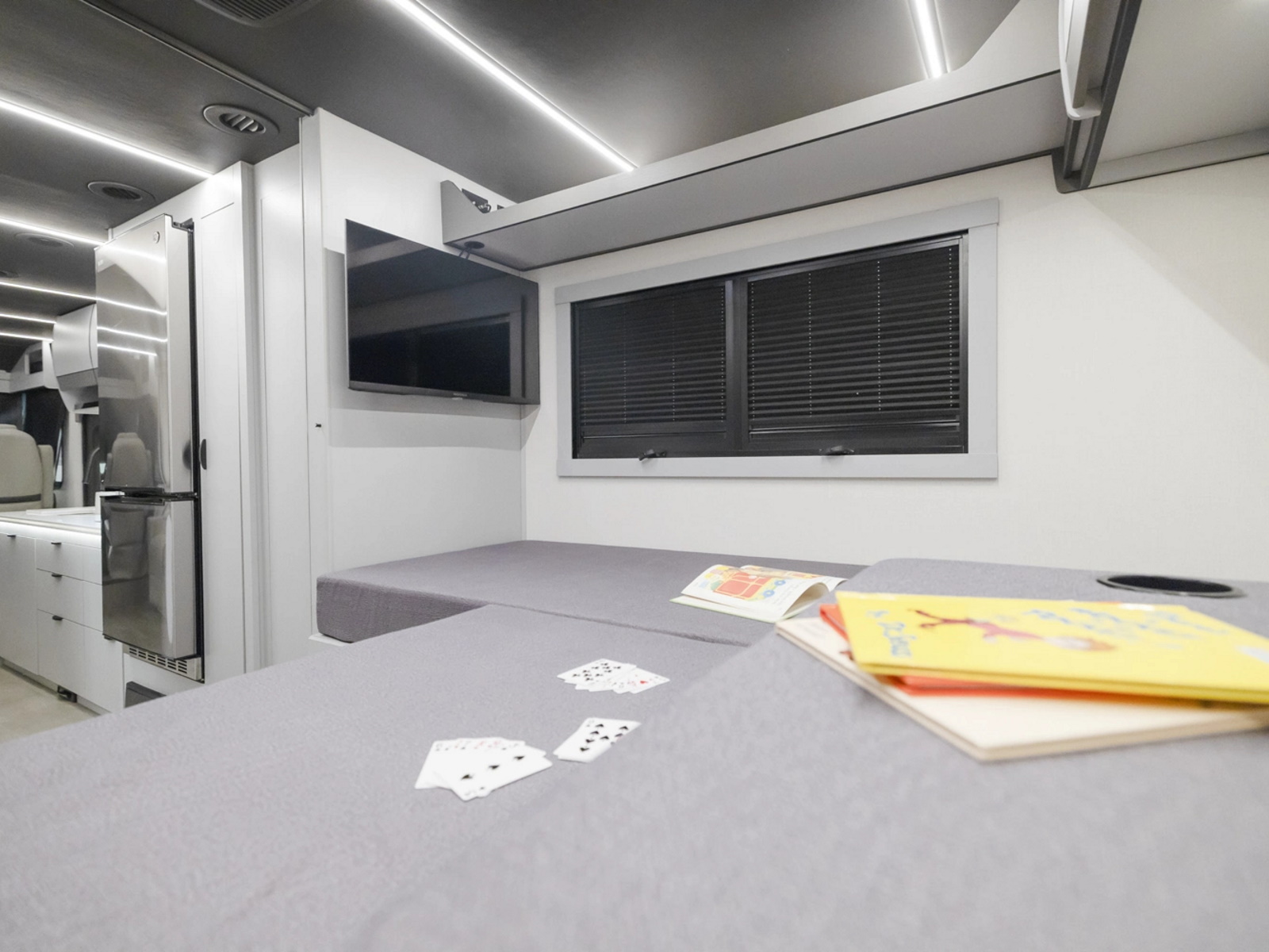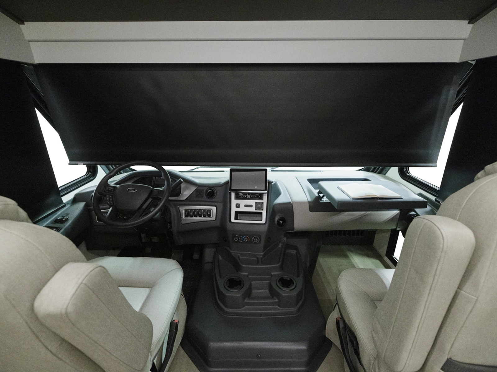 The Euro 25TB offers flexible sleeping and lounging in a compact Class A package. Built on a Ford F-53 chassis, its gas-powered engine combines fuel economy with reliable touring power. With integrated shading on large square windows, premium insulation, and on-demand hot water, it supports spontaneous weekend getaways and longer outdoor journeys alike.